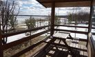 Вокруг домика расположен помост со ступеньками, спускающимися к воде. К домику с помостом ведет деревянный мостик.