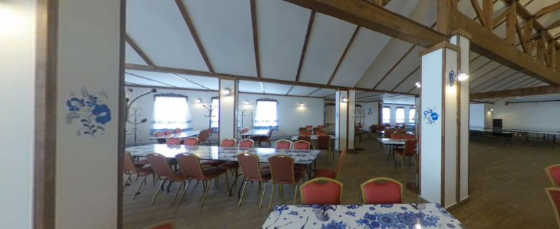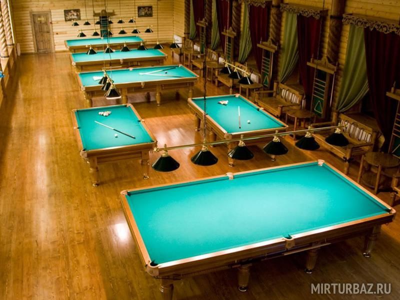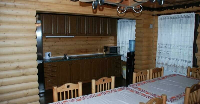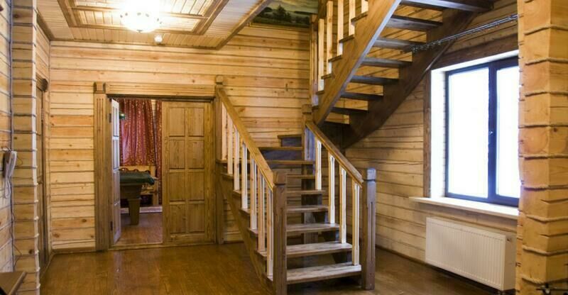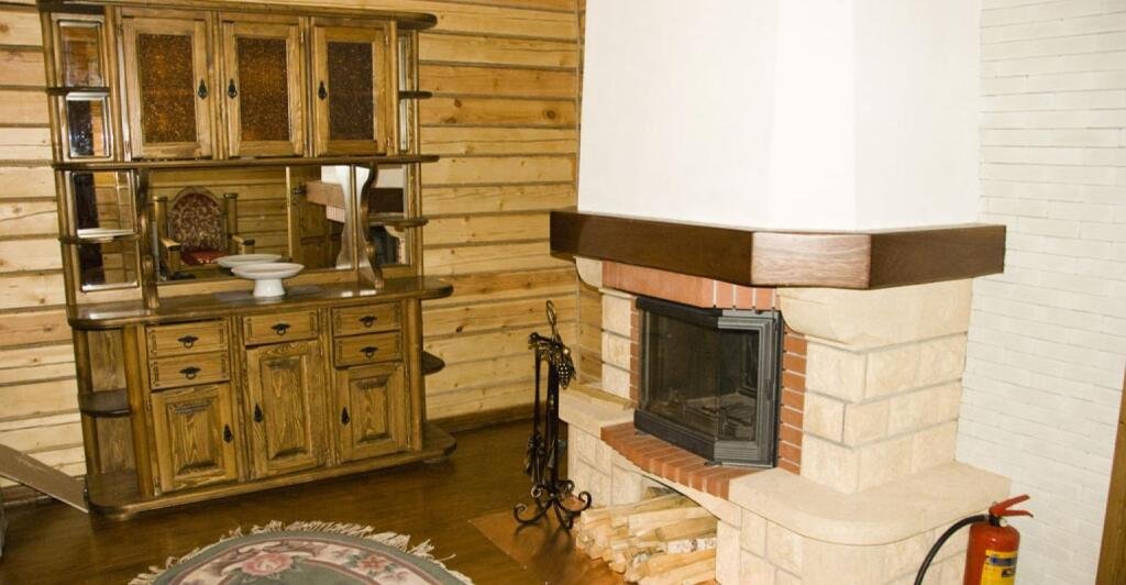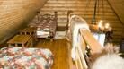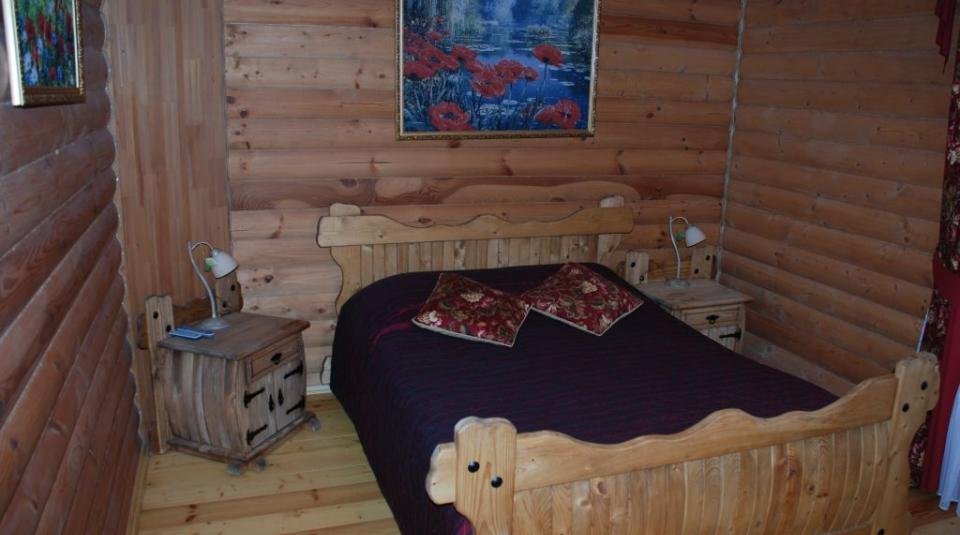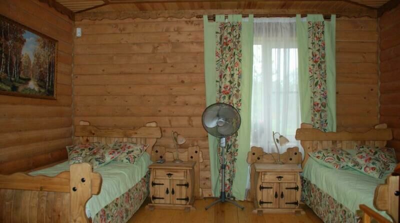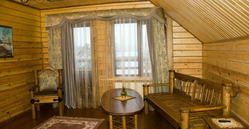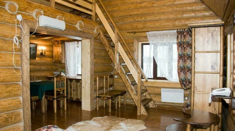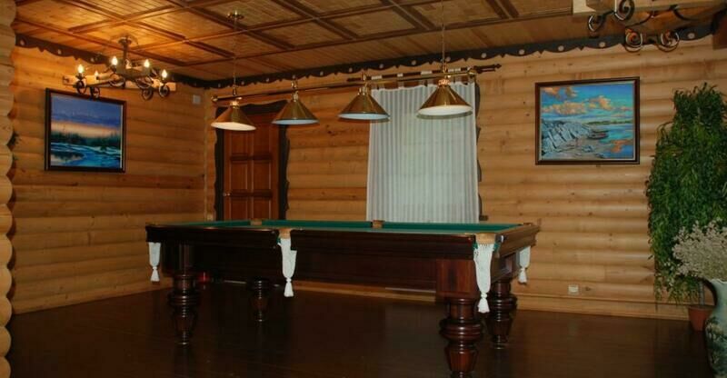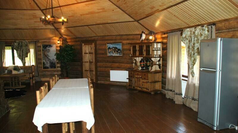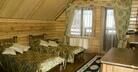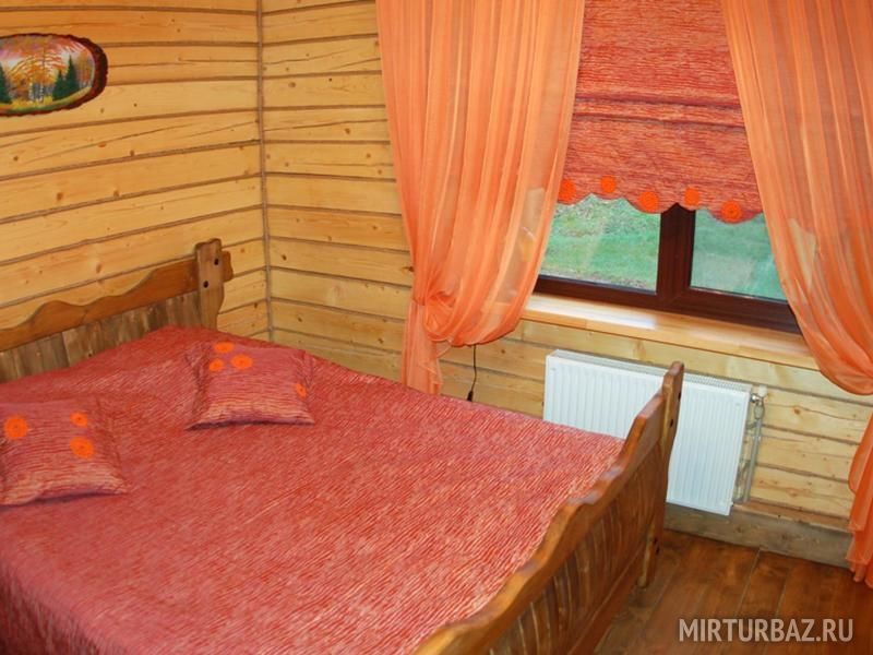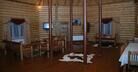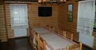 На первом этаже - трапезная, в которой есть необходимая посуда,комната отдыха с бильярдным столом, санузел. На втором этаже расположены четыре комнаты, в каждой из которых есть двуспальная кровать. В двух из них есть возможность оборудовать дополнительное спальное место. Второй этаж также оснащен санузлом.