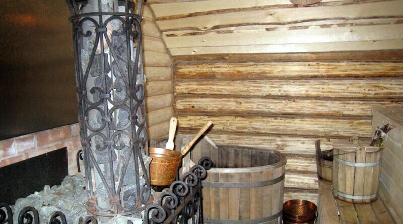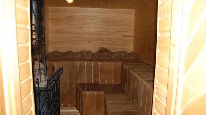 В бане есть отдельный выход в огороженный внутренний дворик, в котором располагается купель с регулируемой температурой воды. В комнате отдыха множество развлечений: телевизор, DVD-проигрыватель, музыкальный центр с функцией караоке. Печка в парной совмещена с камином в комнате отдыха.
