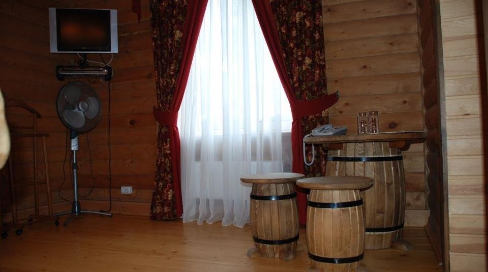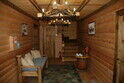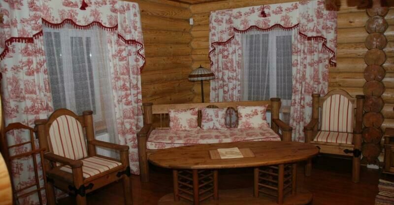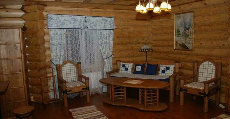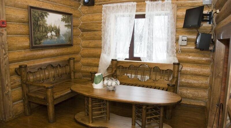 Каждая изба оформлен в соответствующем стиле - бревенчатые стены, звериные шкуры, металлические литые светильники, а также оборудован всем необходимым для комфортного пребывания - посудой, мебелью, холодильником, электрочайником, микроволновой печью.