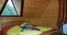 На первом этаже находятся прихожая, кухня, санузел с душевой кабиной и спальня с двуспальной кроватью, а на втором - две односпальные кровати.