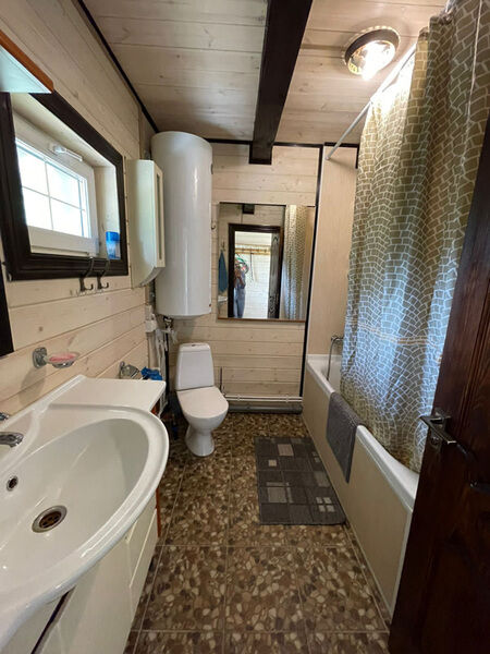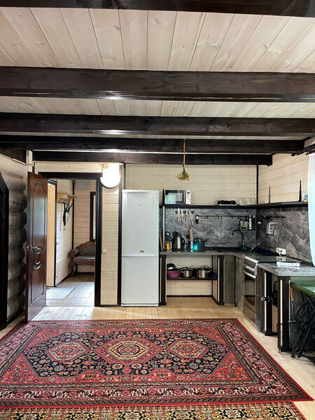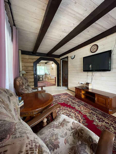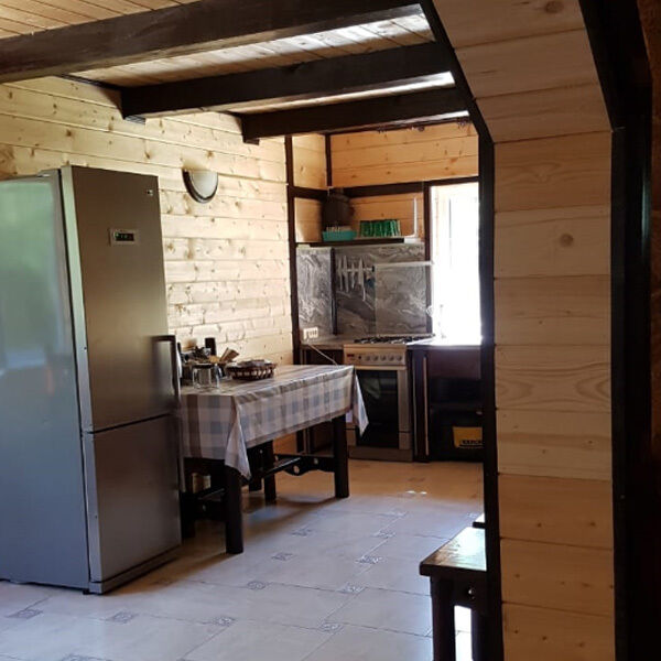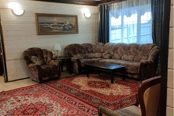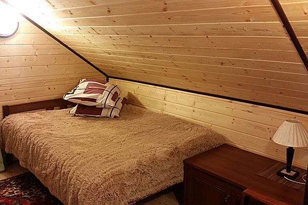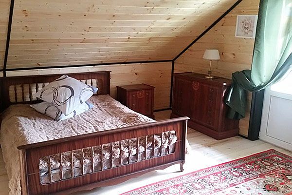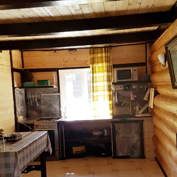Две спальни с двухспальными кроватями, есть дополнительные спальные места. Все удобства: санузел с душевой кабиной, баня, горячая и холодная вода. Имеется телевизор, холодильник, кухня (плита, микроволновка, мойка, вся необходимая посуда).