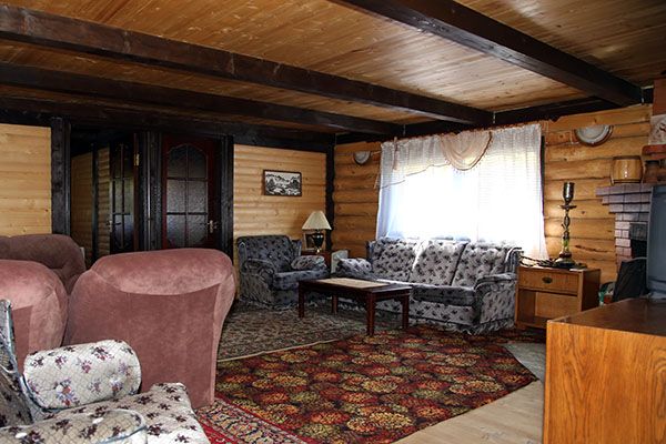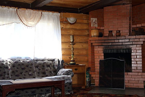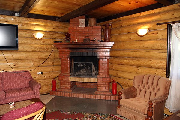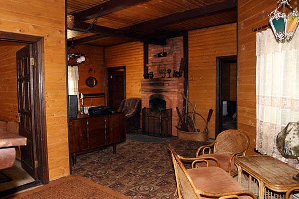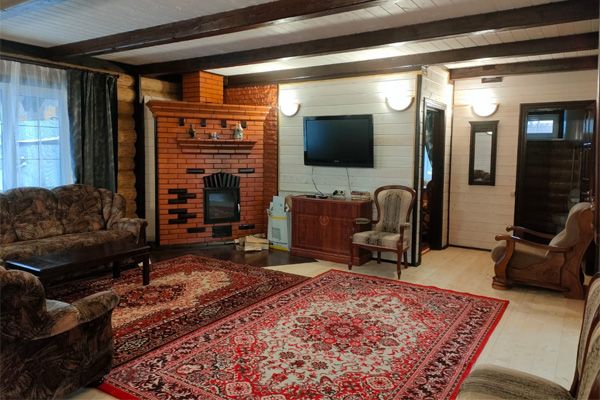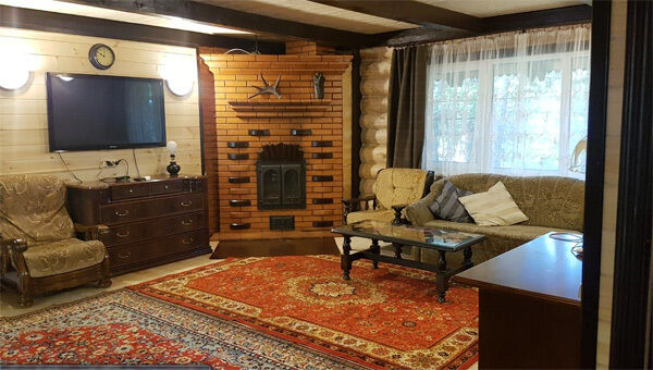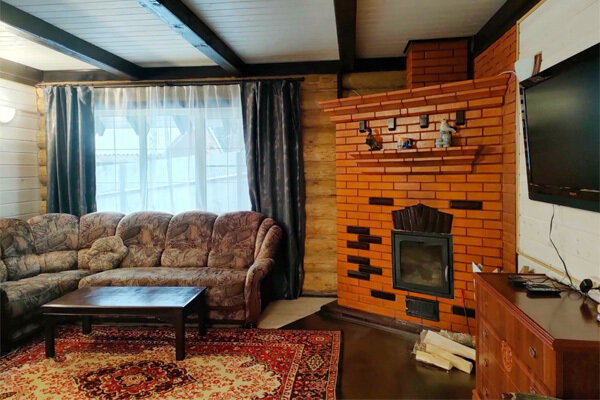 Огромная гостиная с уютной мебелью, встроенной кухней и камином. В доме пять спален. Все удобства: три санузла, горячая и холодная вода. Имеется телевизор, холодильник, кухня (плита, микроволновка, мойка, вся необходимая посуда).