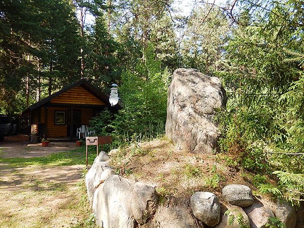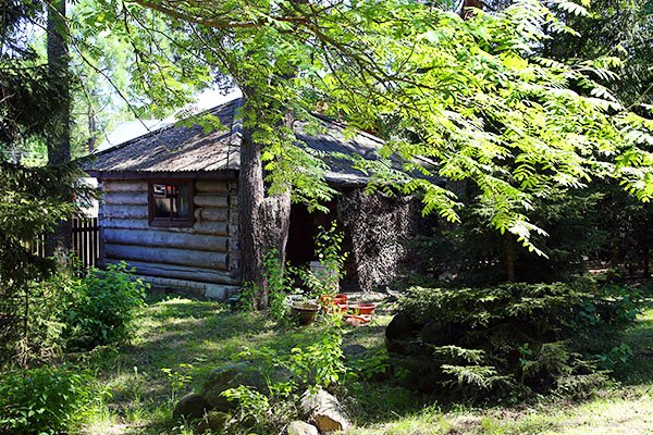 Небольшой одноэтажный бревенчатый коттедж с камином и баней в окружении реликтового леса.