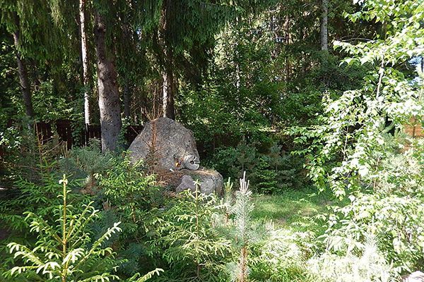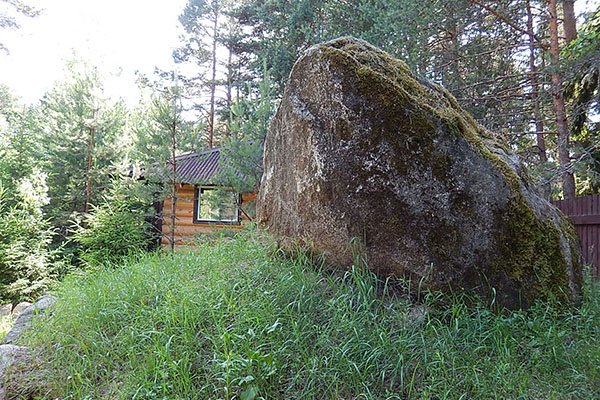 На территории огороженного участка расположены живописные многотонные камни-валуны.
