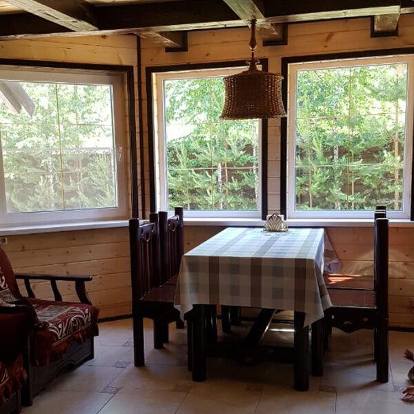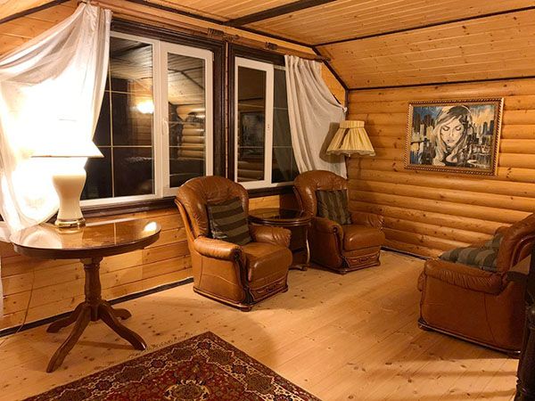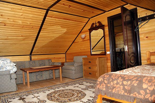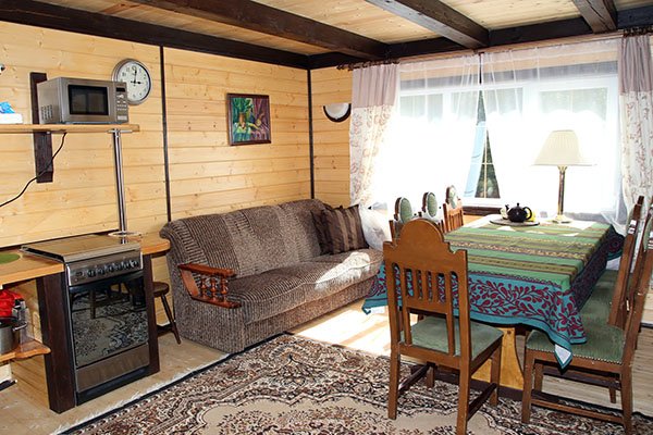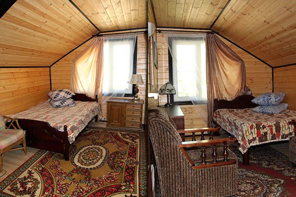 Уютные коттеджи в русском деревенском стиле создают атмосферу уединения и тепла. В каждом коттедже могут комфортно разместиться семьи или группы до 10 человек. Здесь есть просторные спальни с двухспальными кроватями и дополнительные места для сна, а также все удобства для беззаботного отдыха.