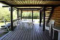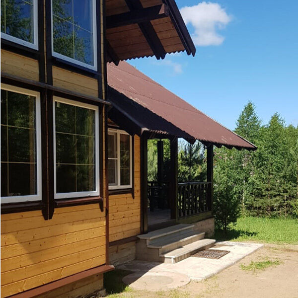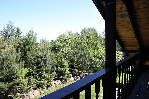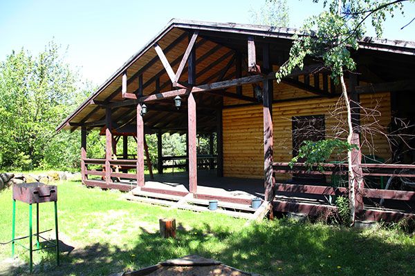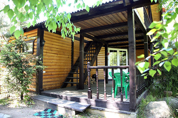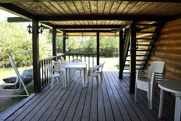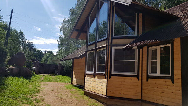 Коттедж расположен в 40 метрах от берега на участке 10 соток, по которому протекает ручей. Для вечернего отдыха имеется большая крытая терраса и мангал.