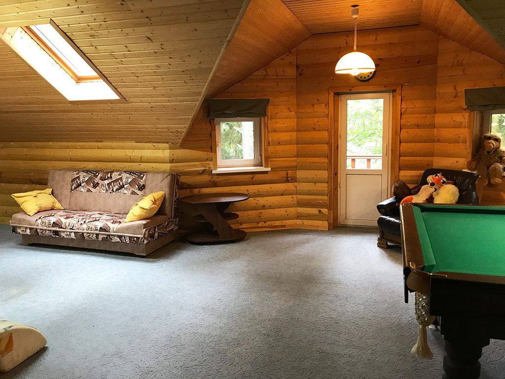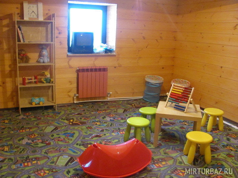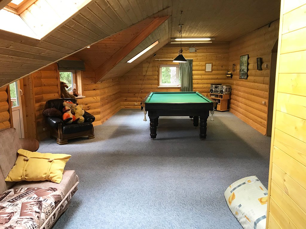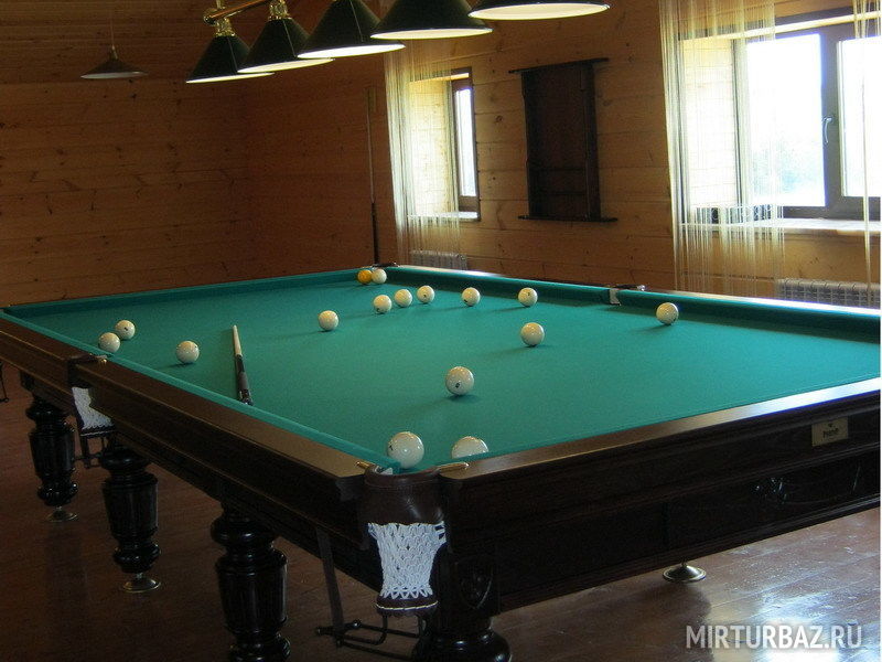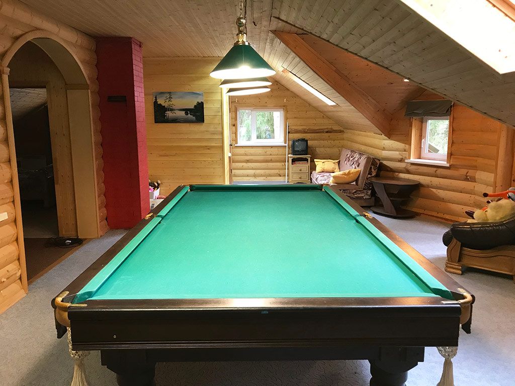 Также есть зал с 12-ти футовым бильярдным столом и детской комнатой на втором этаже.