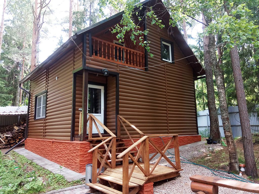Бревенчатый коттедж с четырьмя спальными комнатами.