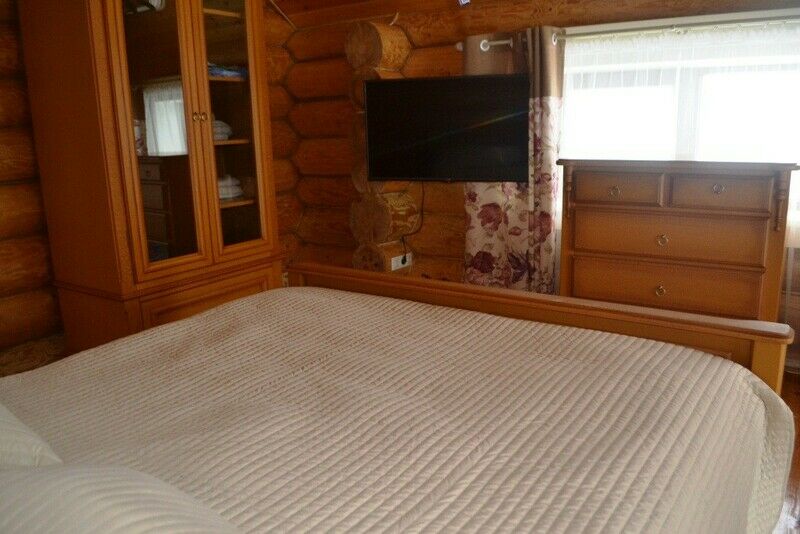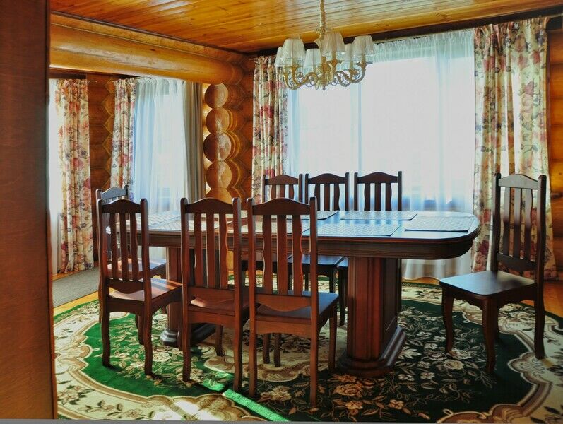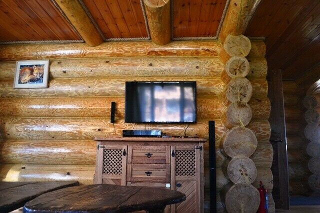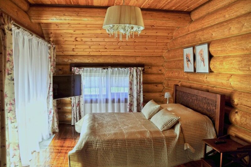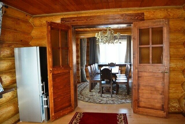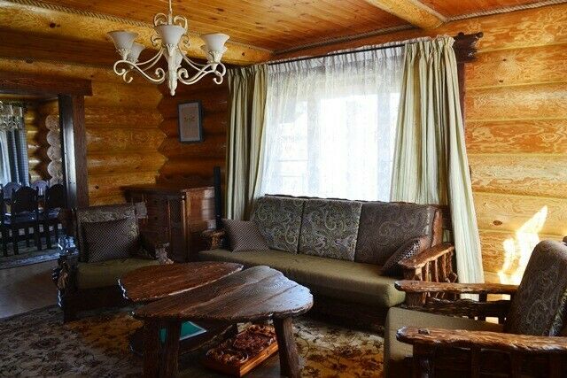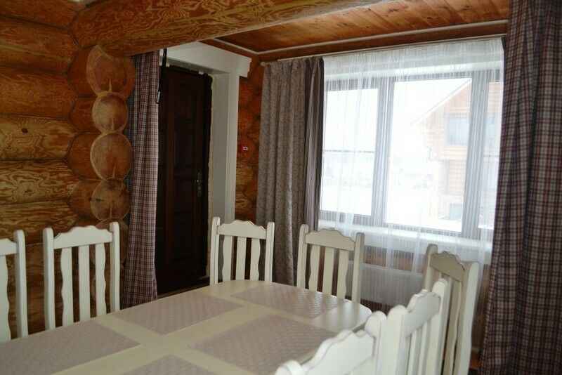 К услугам предлагается деревянный трёхуровневый коттедж. Дом срублен из местного высококачественного леса по оригинальному проекту с применением самых новейших технологий. Комфорт гостей продуман до мелочей: в доме, рассчитанном на 6 человек, – 3 санузла с душевыми кабинами и бильярд. Три спальни расположены на втором этаже, каждая в индивидуальной цветовой гамме. Кухня оборудована всем необходимым: есть плита, СВЧ печь, холодильник, всевозможная кухонная утварь и посуда, ножи и столовые приборы, бокалы для вина. На первом этаже, помимо кухни – обеденный стол для большой компании и уютная гостиная с плазменным телевизором.