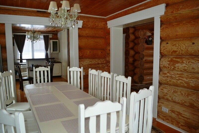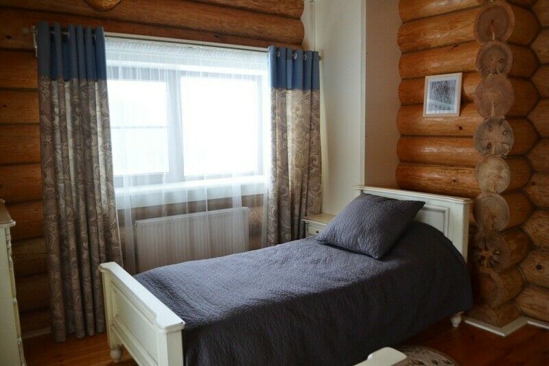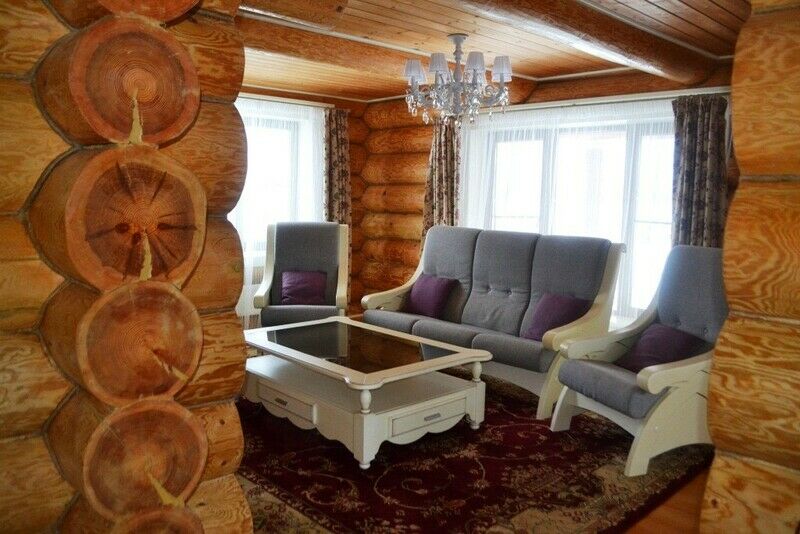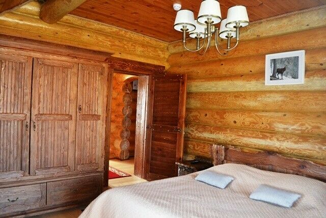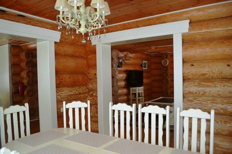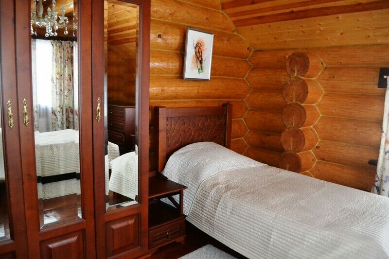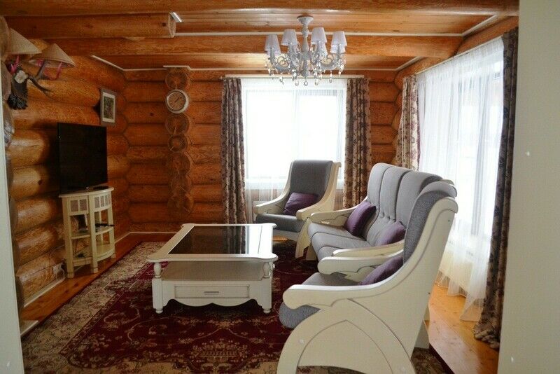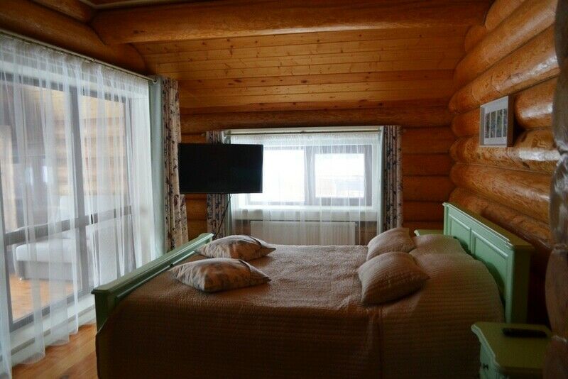 К услугам предлагается деревянный трёхуровневый коттедж. Дом срублен из местного высококачественного леса по оригинальному проекту с применением самых новейших технологий. Комфорт гостей продуман до мелочей: в доме, рассчитанном на 6 человек, – 3 санузла с душевыми кабинами, сауна и бильярд. Три спальни расположены на втором этаже, каждая в индивидуальной цветовой гамме. Кухня оборудована всем необходимым: есть плита, СВЧ печь, холодильник, всевозможная кухонная утварь и посуда, ножи и столовые приборы, бокалы для вина. На первом этаже, помимо кухни – обеденный стол для большой компании и уютная гостиная с плазменным телевизором.