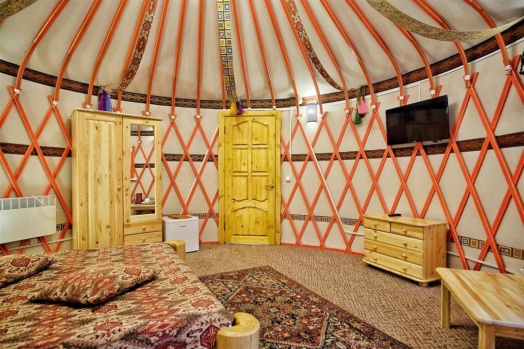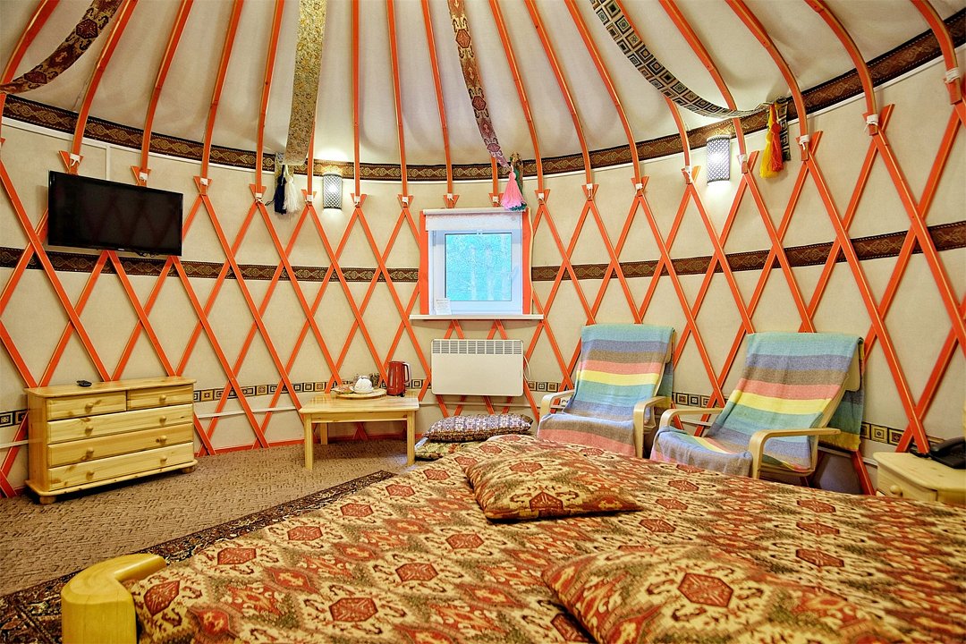 Одноэтажный коттедж «Юрта» площадью 28 м2 выполненная в теплых красных тонах. Идеально подходит для романтичной пары или семьи с одним ребенком. Каждый коттедж расположен на берегу озера Селигер и оснащен всем необходимым для уютного и комфортного проживания. Коттедж оснащен одной большой двухспальной кроватью с удобным ортопедическим матрацем. Ванная комната оборудована душевой кабиной, полотенцами, феном и гигиеническими принадлежностями. Из окон открывается вид на хвойный лес или на живописную территорию Базы отдыха.Услуги и удобства