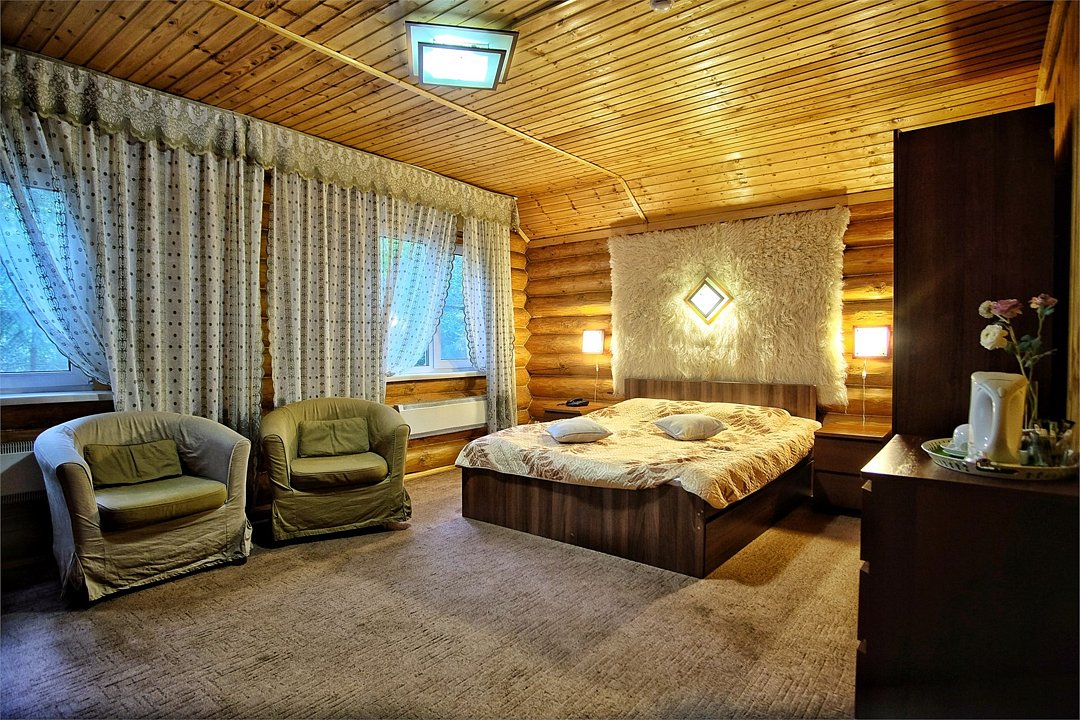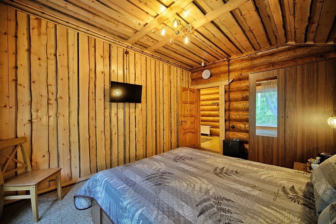 Двухэтажный коттедж площадью 74 м2. Идеально подходит для большой семьи или компании. Коттедж расположен на берегу озера Селигер и оснащен всем необходимым для уютного и комфортного проживания. Коттедж оснащен одной большой кроватью с удобным ортопедическим матрацем, двумя односпальными кроватями и раскладывающимся диваном в гостиной на первом этаже. 2 ванных комнаты (на 1-ом и 2-ом этаже) оборудованы душевой кабиной, полотенцами, феном и гигиеническими принадлежностями. Из окон открывается вид на хвойный лес или на живописную территорию Базы отдыха.Услуги и удобства