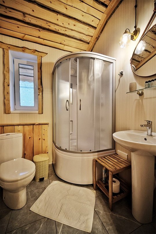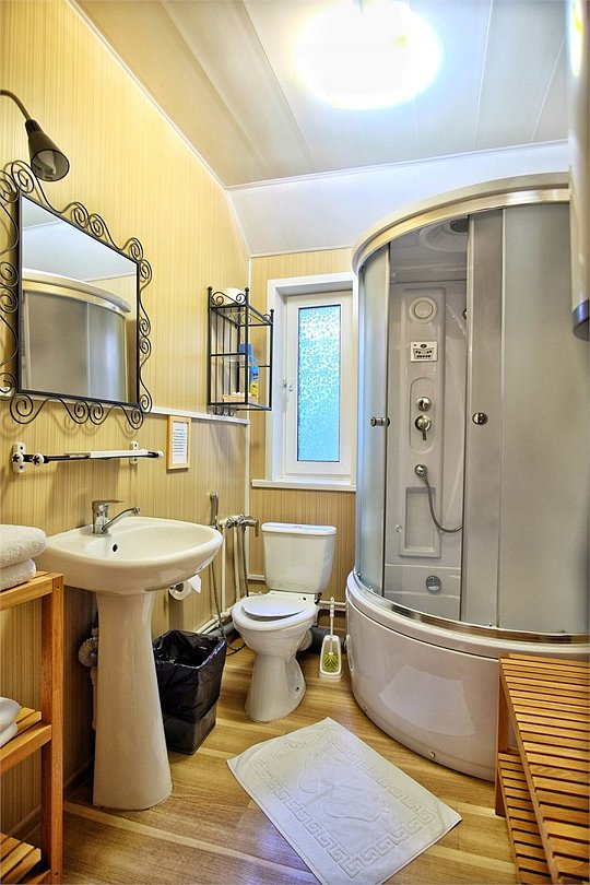 кабельное телевидение, светильник, настольные лампы, фен, обогреватель, душевая кабина, биде, водонагреватель, теплый пол, банные полотенца, гигиенические средства, терраса, кровать «King size», кресла, шкаф для одежды, вешалки, журнальный столик, зеркало, комод, мини-бар, чайный набор, сейф, чайник, унитаз, раковина, ковровое покрытие, отопление, отдельный вход в номер, ламинат, высокие потолки, стаканы, внутренний телефон, телевизор с плоским экраном, мини-холодильник, москитная сеткаВ коттедже