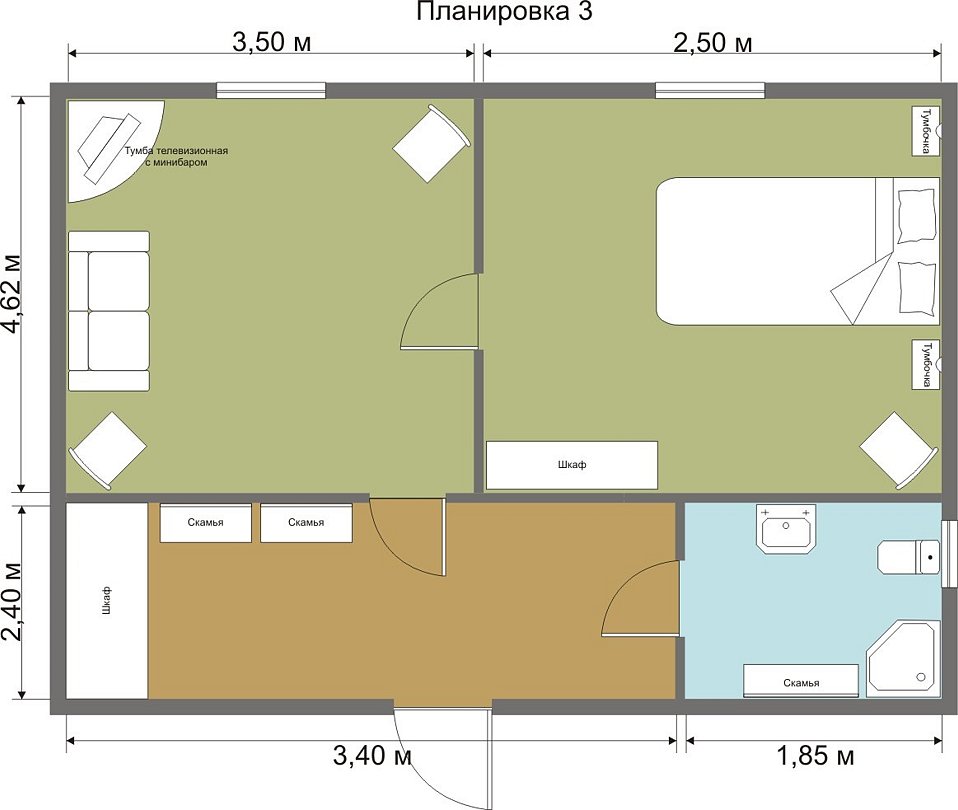 42 м2 · 2-х местный коттедж + 3 доп. места