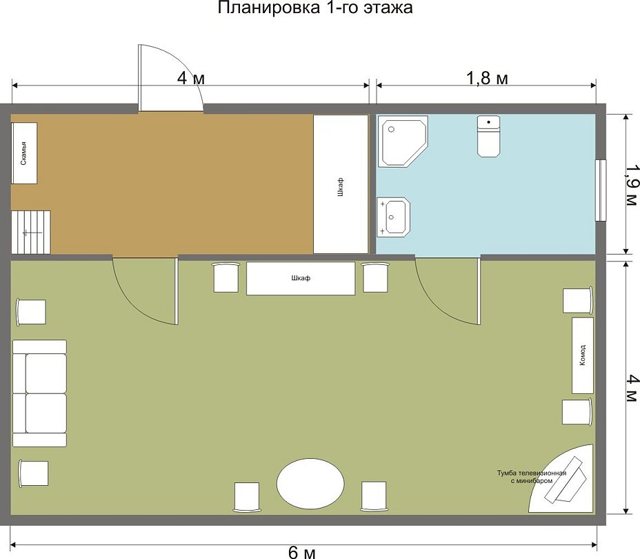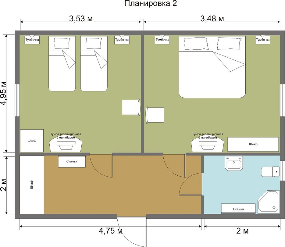 42 м2 · 2-х местный коттедж + 4 доп. места