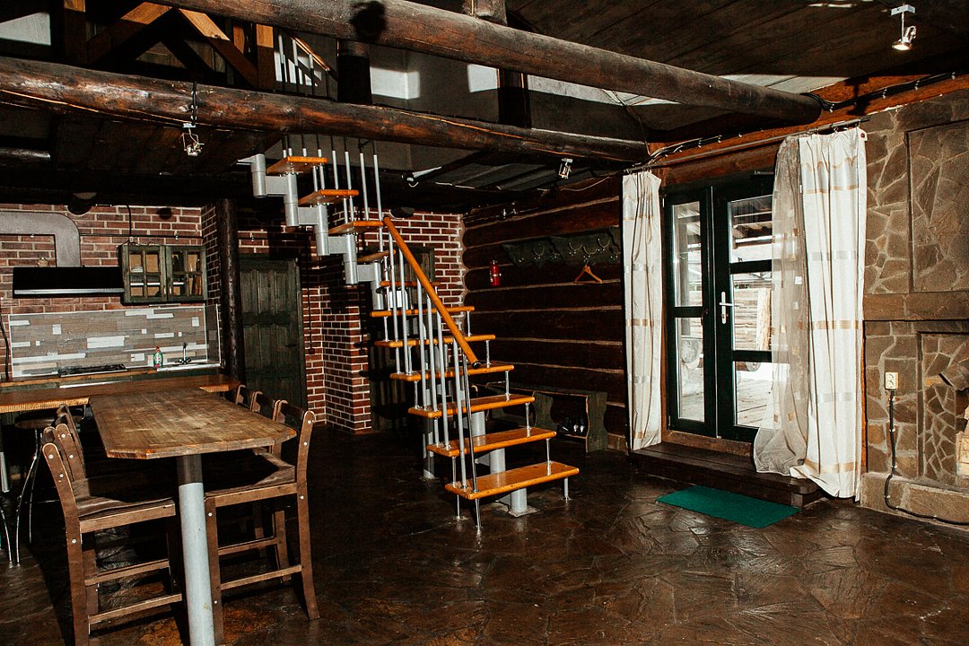Инфраструктура: купель, зона отдыха, обливное ведро, душРусская баня, рассчитанная на шесть человек, предлагает все необходимое для полноценного отдыха. Здесь вы найдете парилку и душ, а также обливное ведро и купель, чтобы насладиться холодными процедурами.