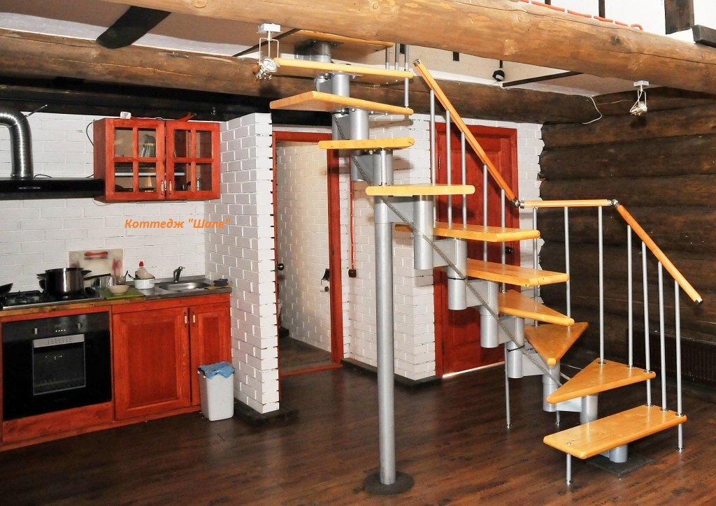 Коттедж с тремя спальнями, каминный зал, кухня, совмещенная с залом.