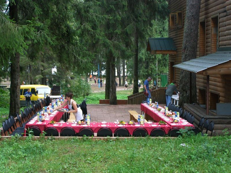 В стоимость проживания на турбазе включено трёхразовое питание по принципу «шведского стола», предоставляемое в столовой комплекса.
