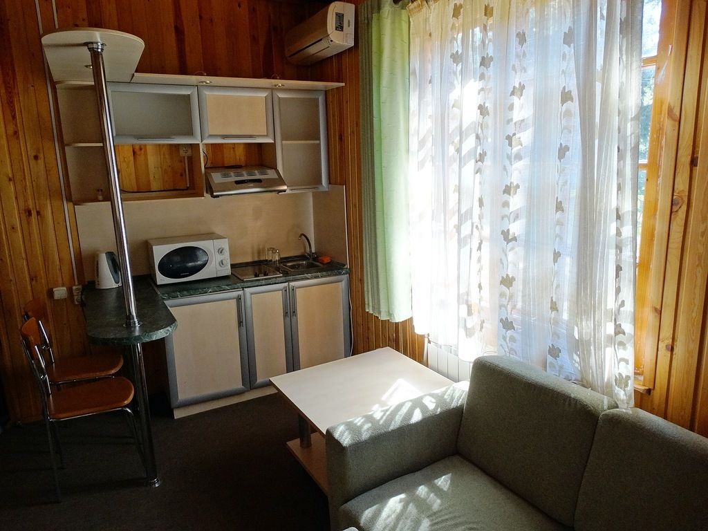 На территории комплекса находятся два пятиэтажных жилых корпуса, административный блок, а также столовая на 500 мест, библиотека с настольными играми и диско-зал. Гостям предоставляется широкий выбор жилья, включая стандартные номера и роскошные деревянные коттеджи. Среди вариантов: двухкомнатные номера категорий полулюкс и люкс, однокомнатные «Евро» и стандартные двух- и трехместные номера.