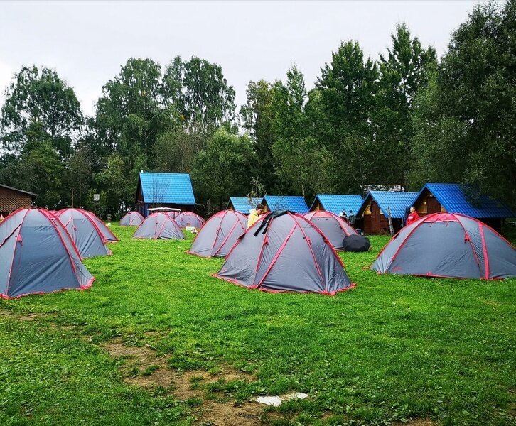 Для палаточного лагеря имеются множество полян на разной удаленности от основной базы отдыха. Для гостей палаточного лагеря оборудованы места для костра, мангалы, столы под навесами, летние душевые и умывальники.