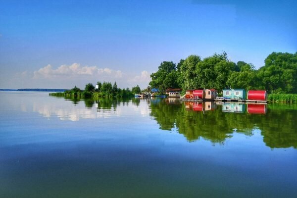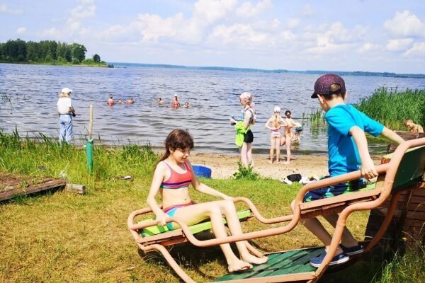 Домики и место для палаточного лагеря расположены непосредственно на берегу Московского моря, что позволяет без труда следить за купающимися детьми и любоваться закатами. С другой стороны территория база закрыта от ветров густым, диким лесом, в котором можно насладиться тишиной, прохладой и даже встретить зверей.