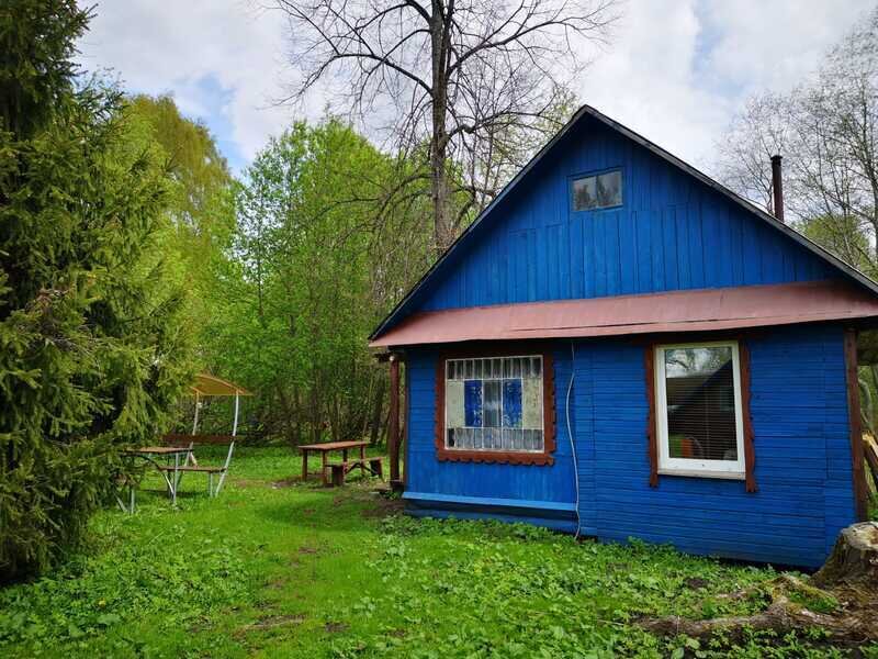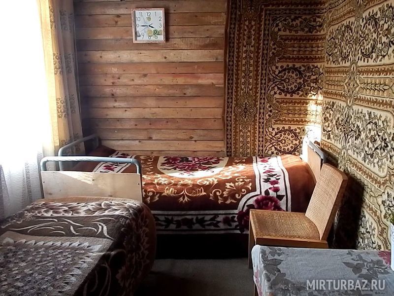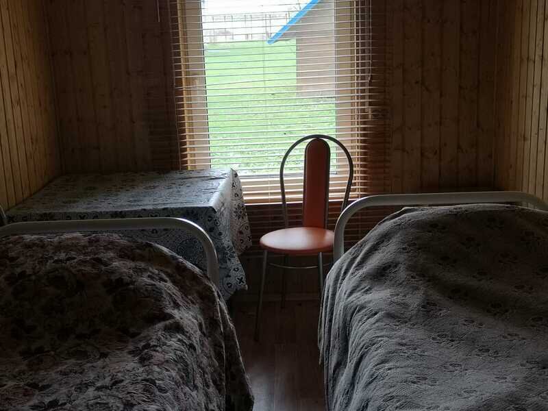 В домике одна большая кровать, общая кухня на территории, туалет и летний душ на территории.