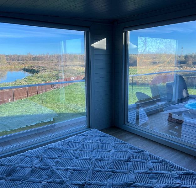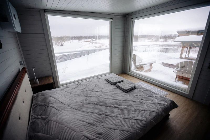 - двуспальная кровать с ортопедическим матрасом, большие панорамные окна с видом на реку, постельное бельё, шкаф для одежды, бризер приточный (очиститель воздуха, гипоаллергенный);