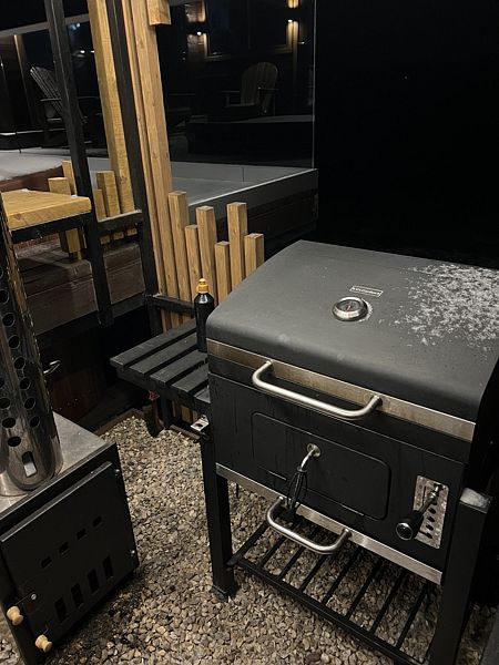 Гриль-мангал на улице под крышей.