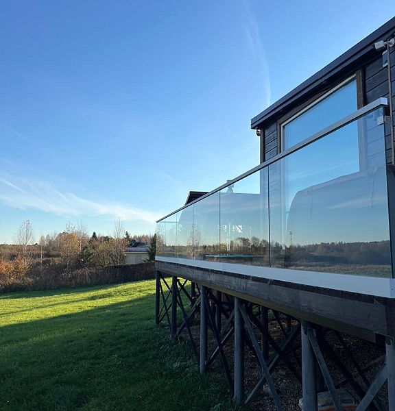 Дом расположен в живописном месте с панорамным видом на реку, что создаёт неповторимую атмосферу спокойствия и уединения.