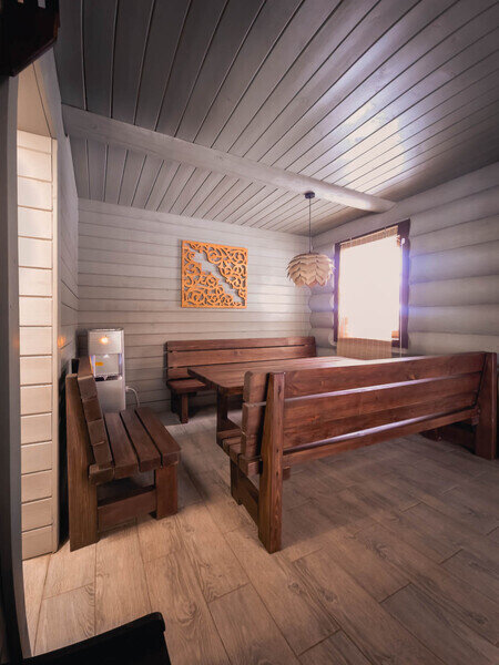 Инфраструктура: тапочки, купель, зона отдыха, полотенца, простыни, шапочки, душ, дубовые веники, березовые веникиРасположение: выход к озеруМинимальное время аренды: 2 часаВремя работы: до 22.00Русская баня — место, где тело восстанавливается и обретает гармонию с душой. Тепло от добротного пара проникает глубоко в организм, расслабляет мышцы, улучшая кровообращение и укрепляя иммунную систему. Освободившись от напряжения, мы обретаем энергию и становимся более стойкими перед повседневными вызовами. В бане семья и друзья собираются вместе, отдыхают и создают незабываемые воспоминания.