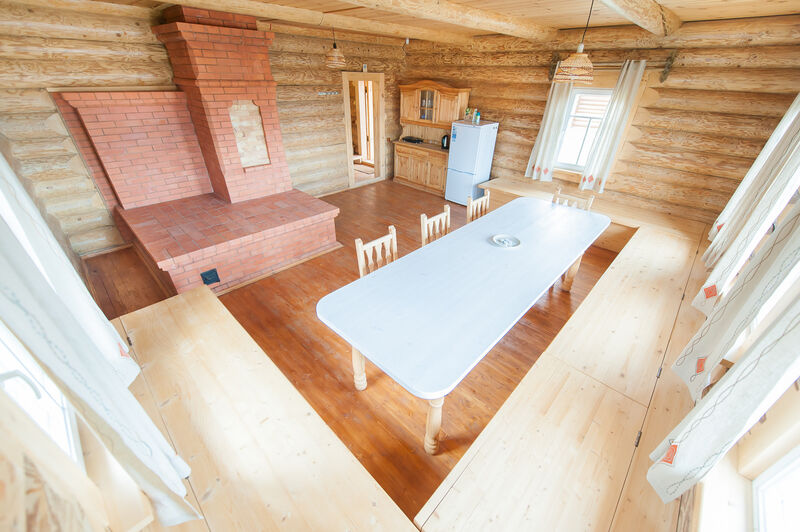 Помещения оборудованы собственной кухней и позволяют отдыхать на берегах озера Сиг с полным комфортом. Каждый дом оборудован всем необходимым для комфортного отдыха. Второй этаж дома – спальня на четыре кровати, на первом расположена гостиная с полноценным спальным местом на настоящей русской печи.