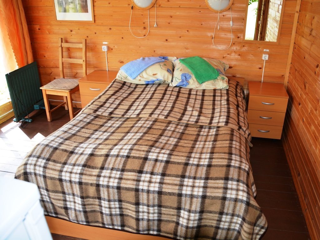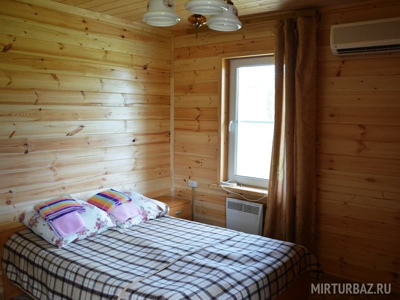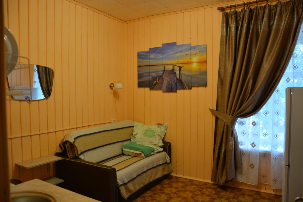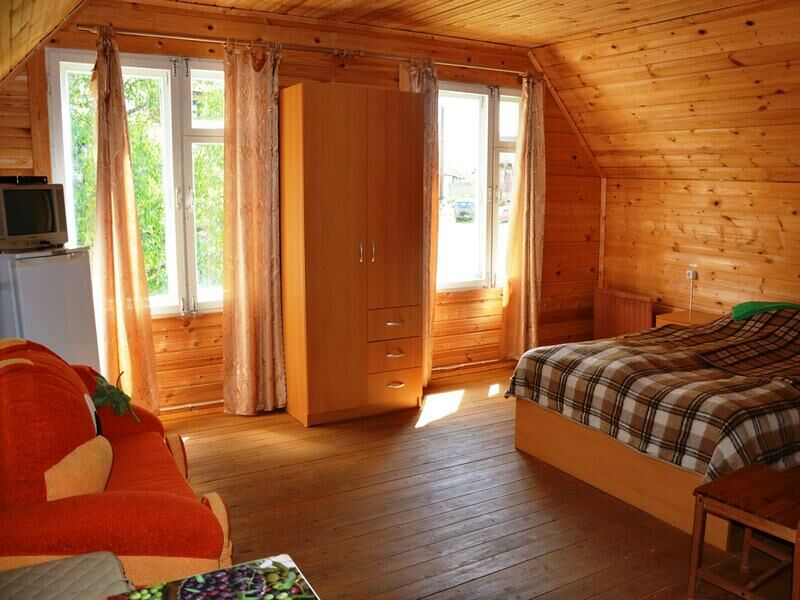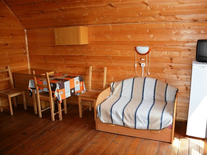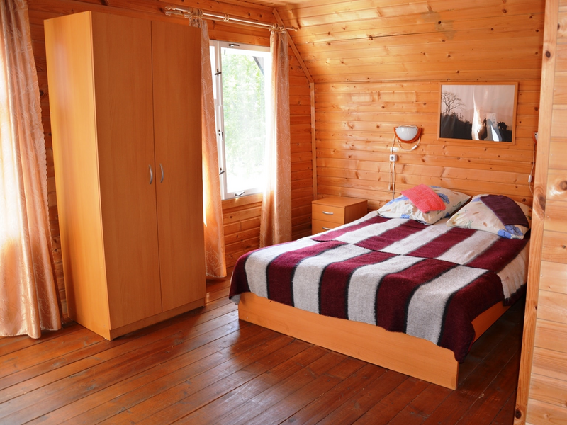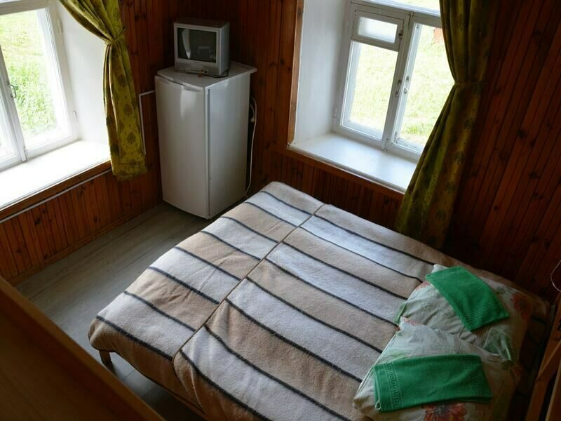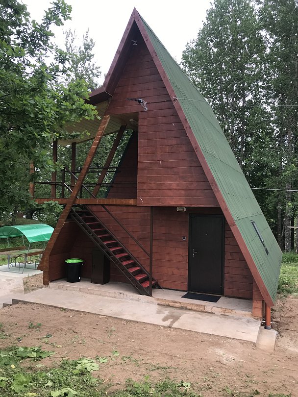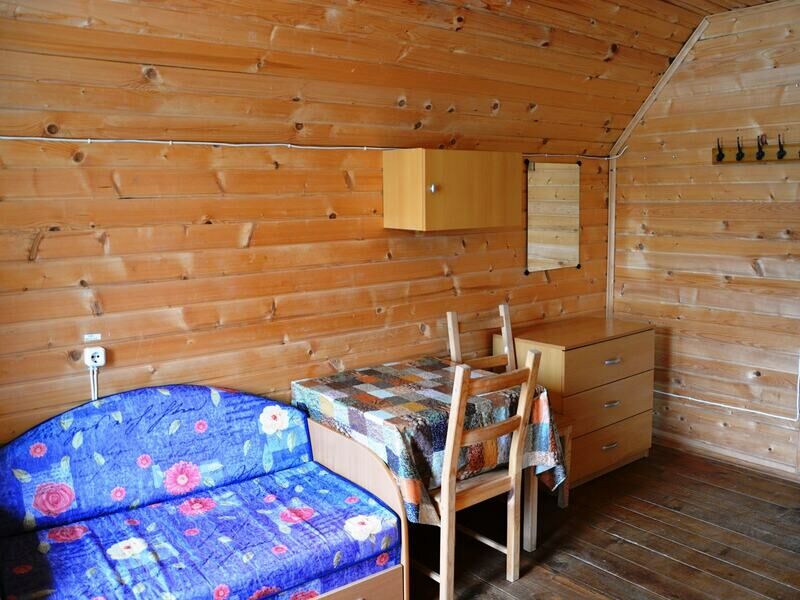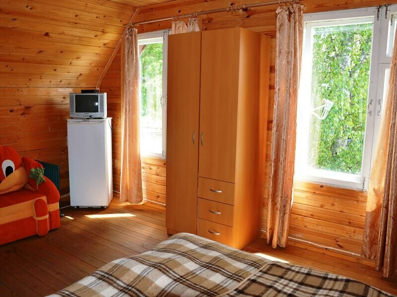 Однокомнатный двухместный номер с дополнительным местом на втором этаже с видом на территорию базы отдыха.