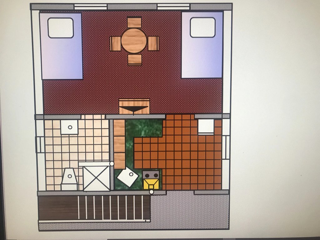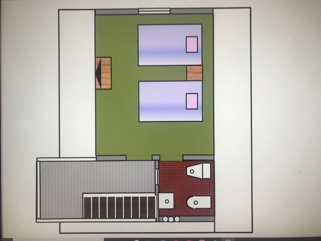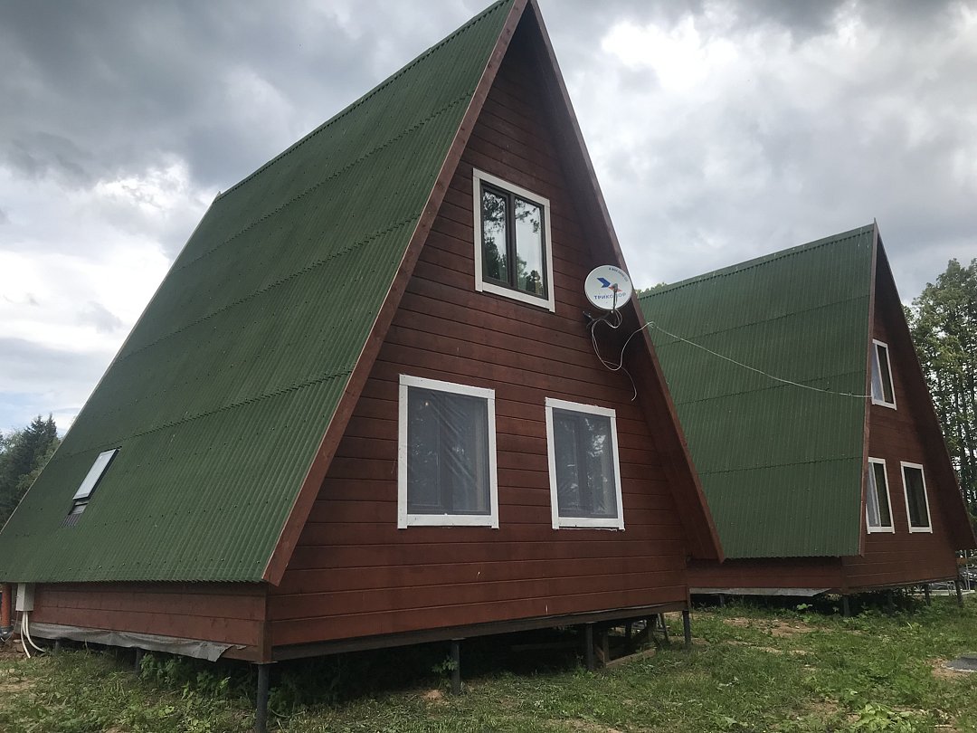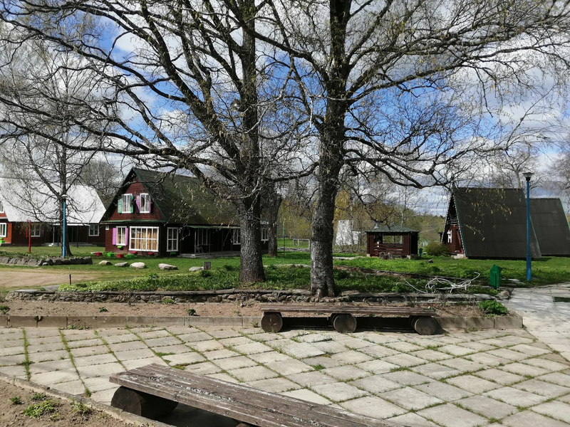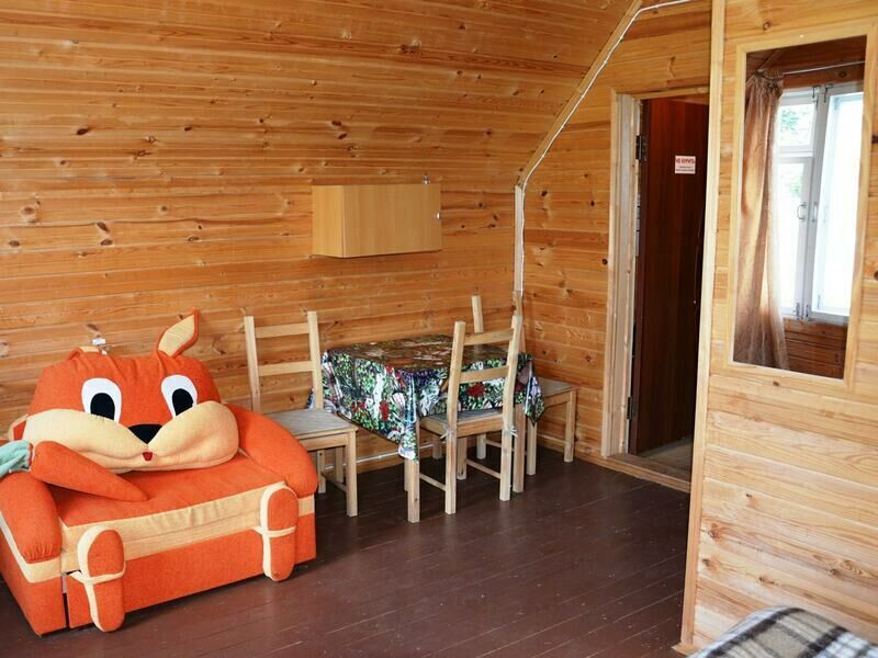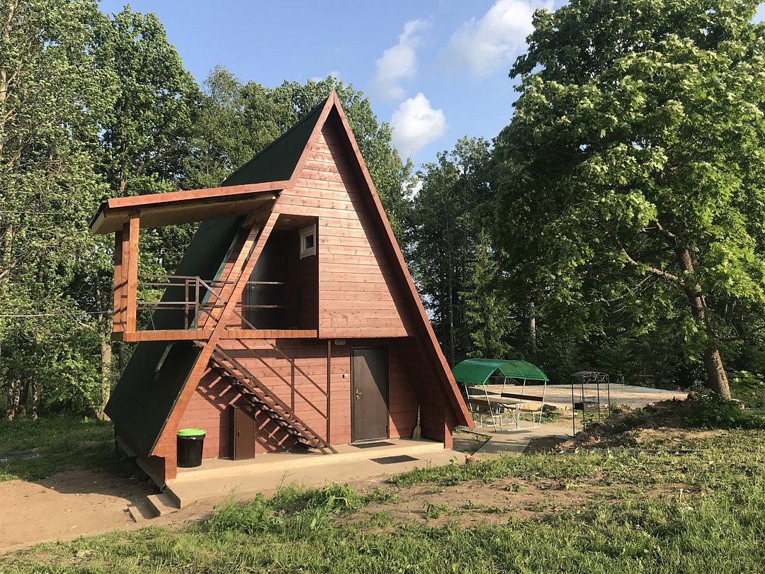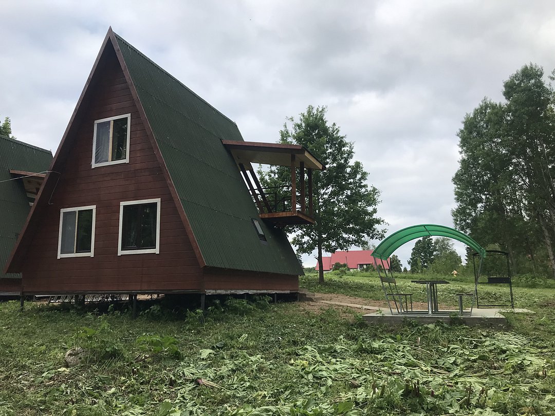 Двухкомнатный двухместный номер с дополнительным спальным местом на втором этаже с видом на территорию базы отдыха.