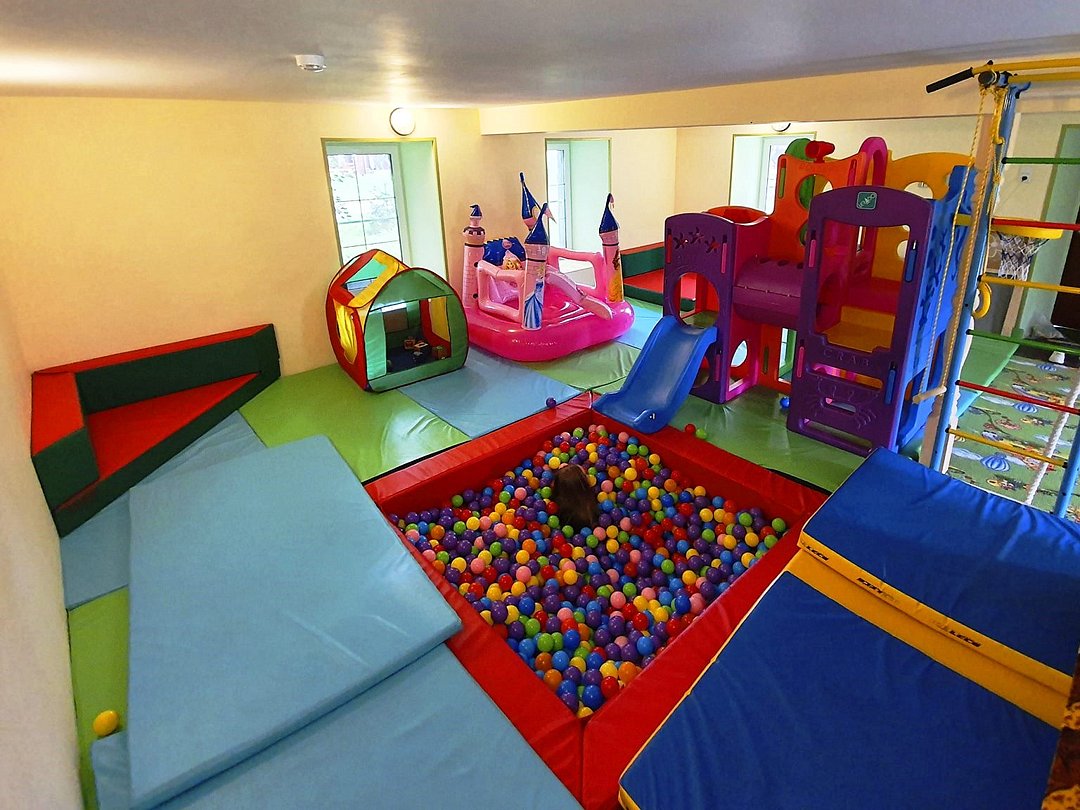 На свежем воздухе неподалеку от кафе расположена большая универсальная детская площадка с различными игровыми модулями, горками и мини-каруселями, среди них: вертикальный лабиринт, открытая и закрытая горка, тоннель, батут, карусель, всевозможные лесенки, башенки, канаты и пьяная лестница.