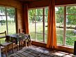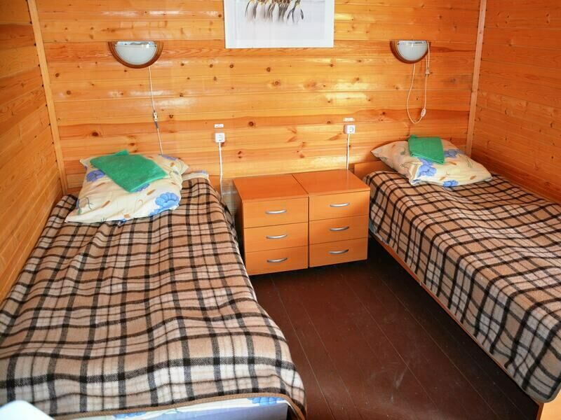 Однокомнатный двухместный номер на первом этаже с видом территорию базы отдыха.