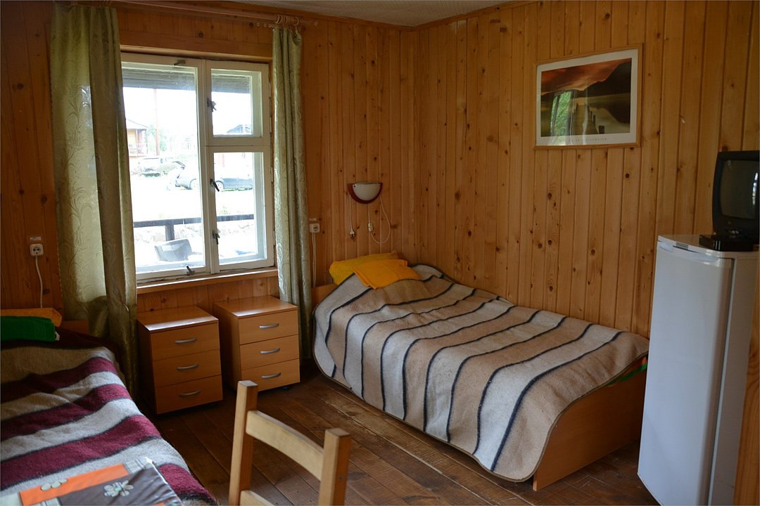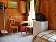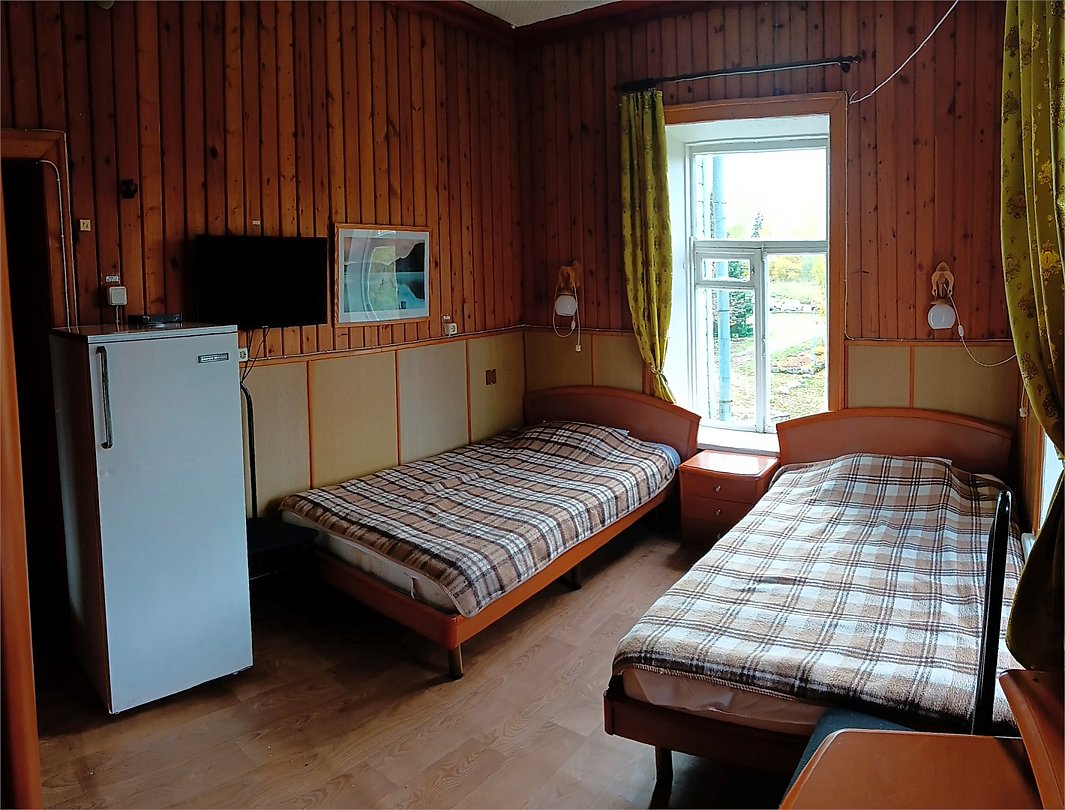 Двухкомнатный трехместный номер на втором этаже с видом на территорию базы отдыха.