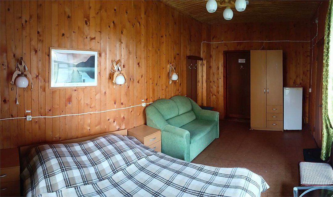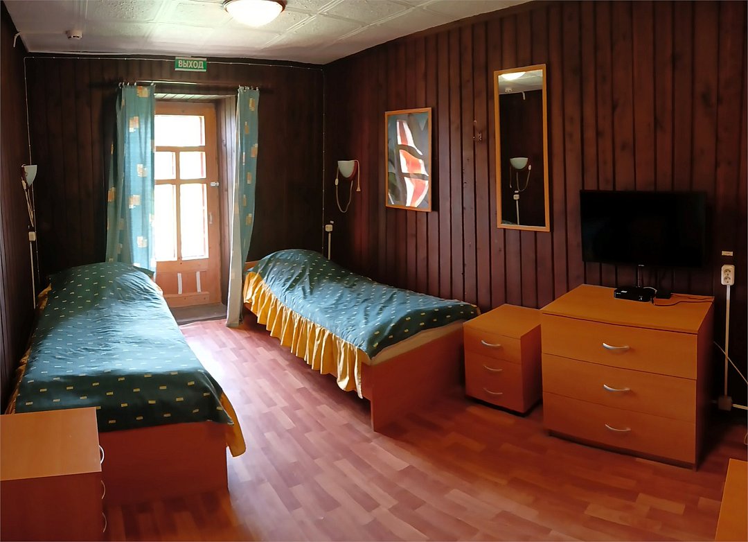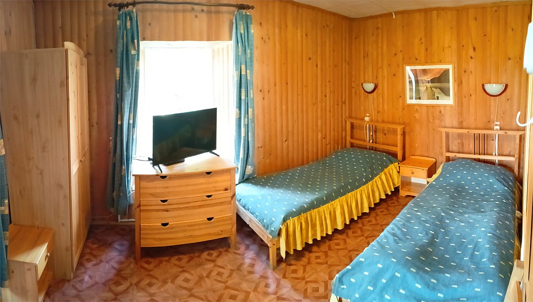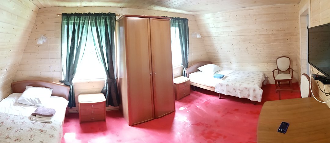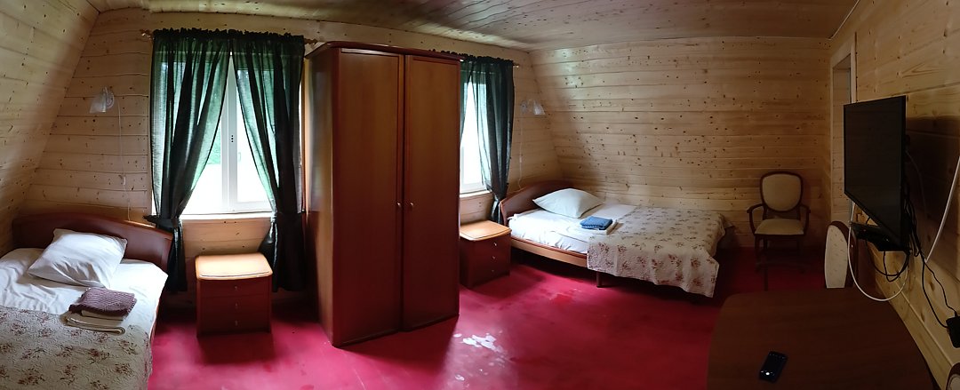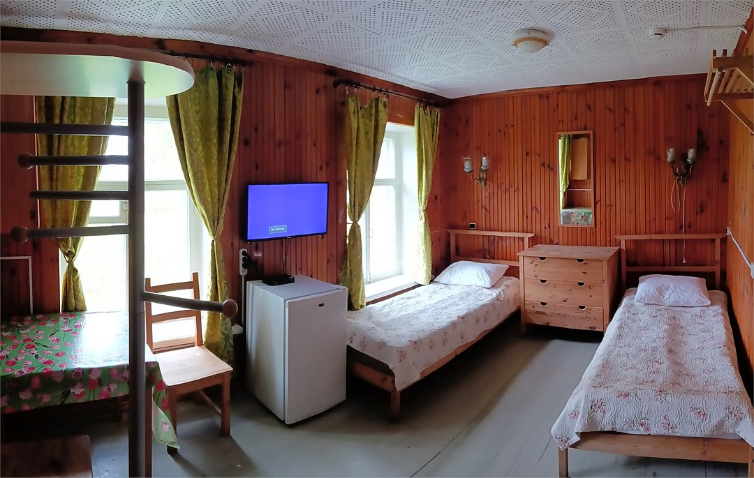Трехкомнатный трехместный номер на втором этаже с видом на территорию базы отдыха.