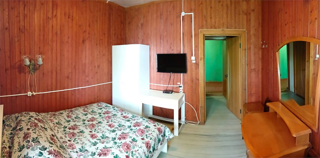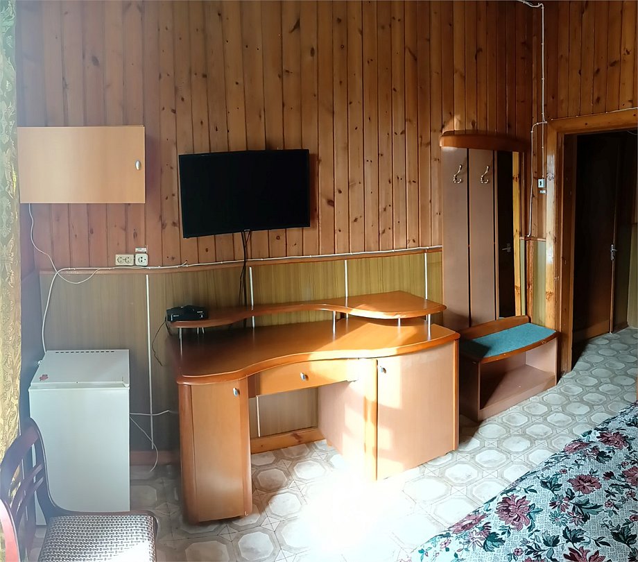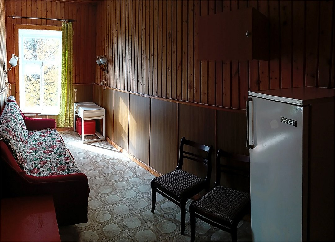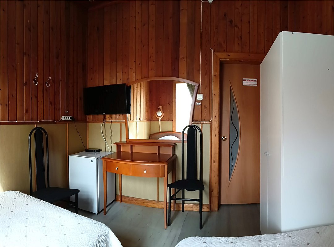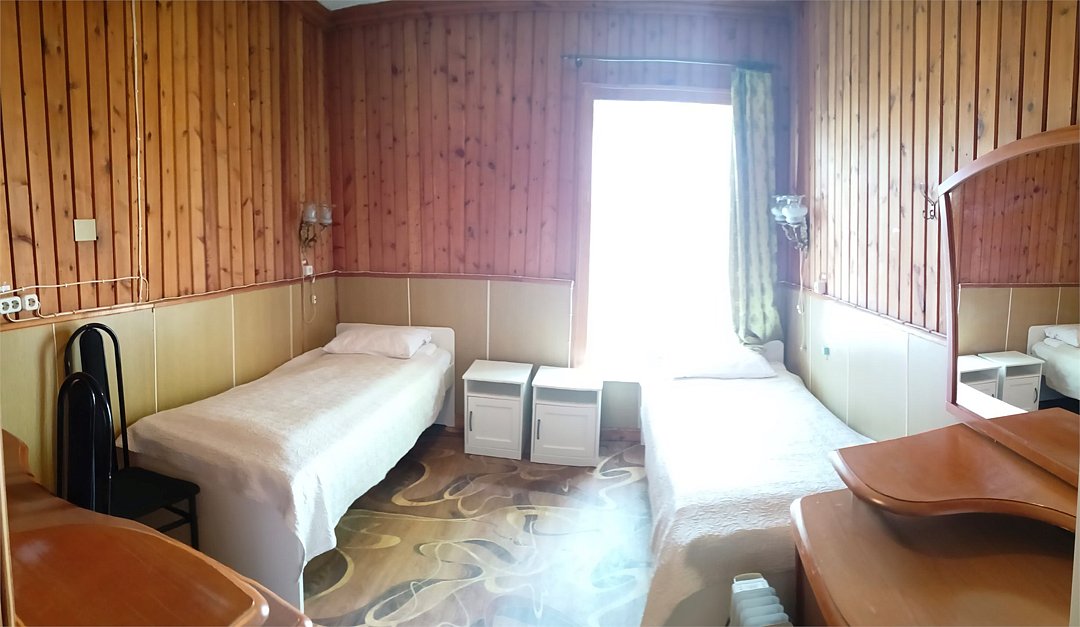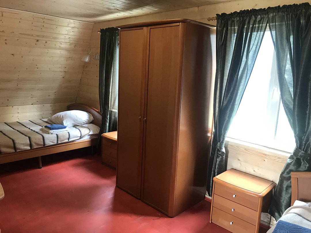 Трехкомнатный трехместный номер на втором этаже с видом на территорию базы отдыха.