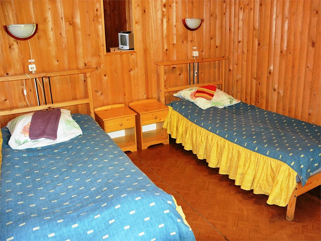 Однокомнатный двухместный номер на втором этаже с видом на территорию базы отдыха.
