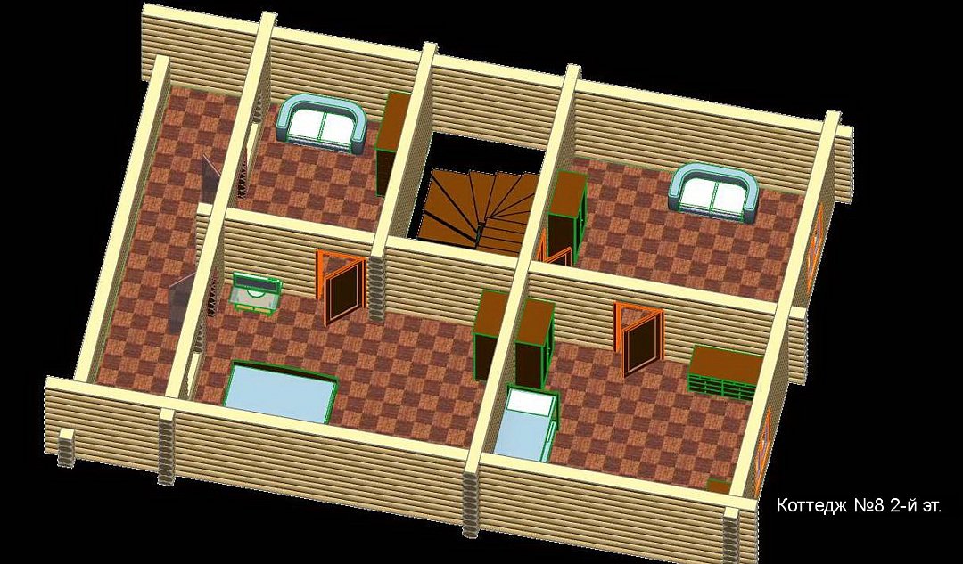 Спальные места: 1 этаж - 2 односпальные кровати; 2 этаж - 2 односпальные кровати.
