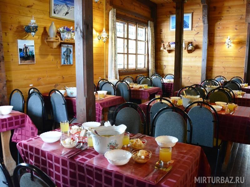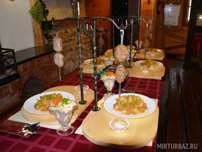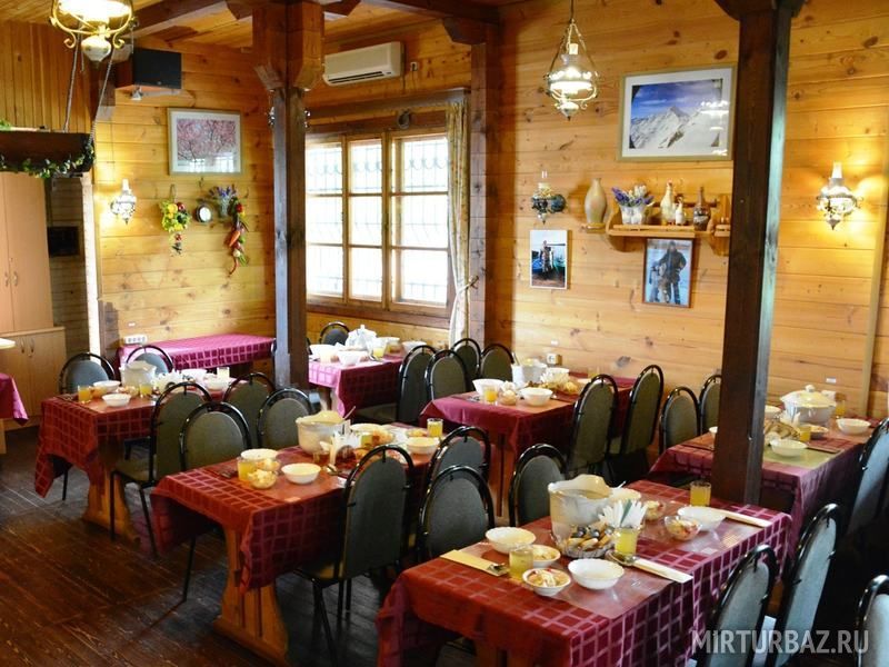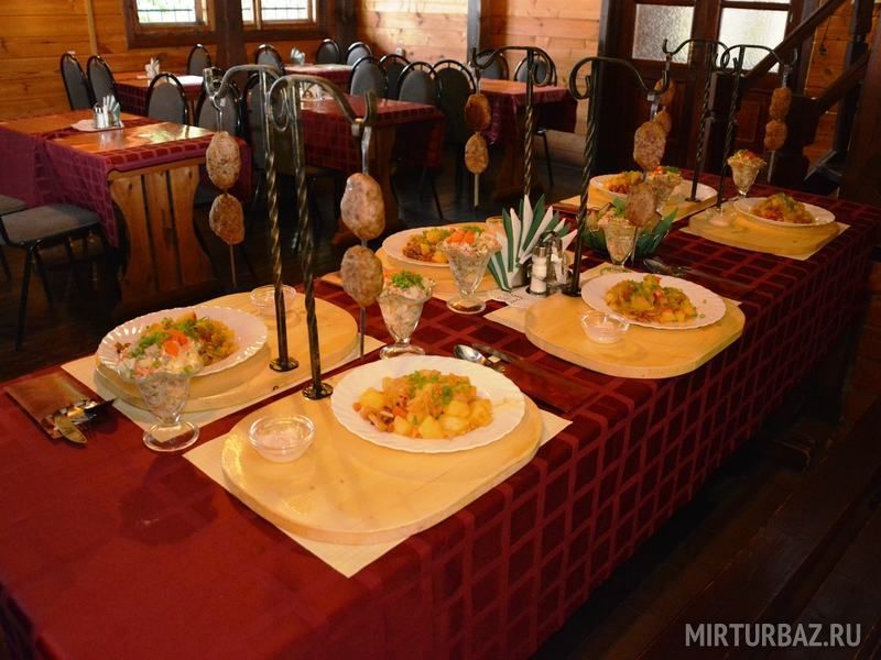Для питания гостей на территории базы отдыха размещено кафе, предлагающее завтраки, обеды и ужины по авторскому меню традиционной русской кухни.