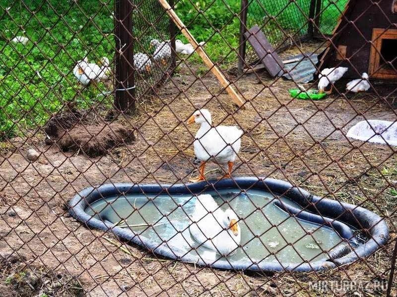 На базе отдыха есть небольшая экоферма, где разводят кур, уток, гусей, кроликов и свиней.