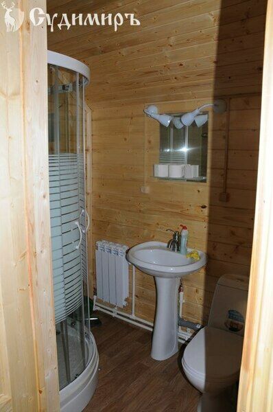 При входе оборудована терраса с мангальной печью, в коттедже расположены каминный зал (обеденный стол с лавками, дровяной камин), кухня (телевизор, холодильник, плита, микроволновая печь, посуда), душевая (туалет, умывальник, душевая кабина, горячая и холодная вода), спальни с одноместными кроватями, двухместный раскладной диван.