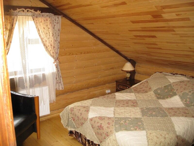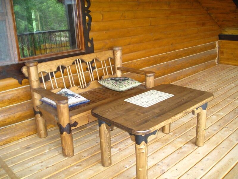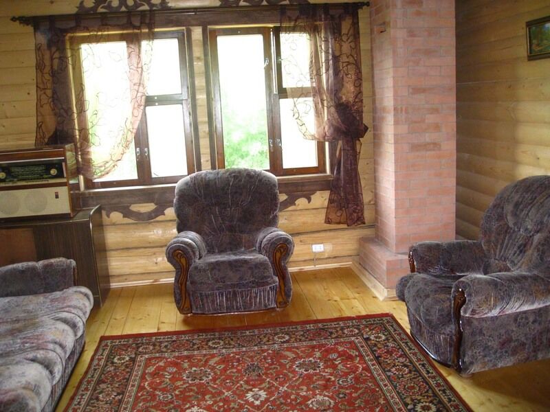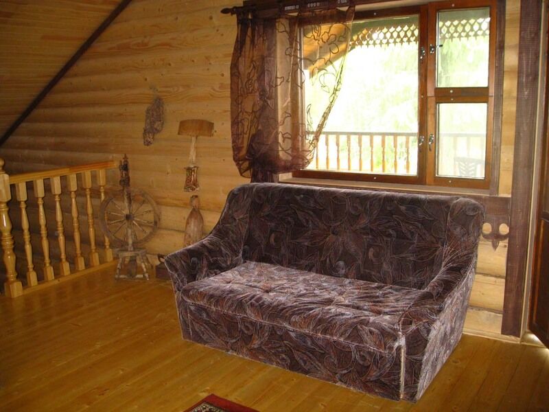 Второй этаж — большой балкон с мебелью из массива, просторный холл с мягкой гарнитурой (2 разборных дивана и 2 кресла), три спальни, санузел. В каждой спальне - двуспальная кровать, тумбочка, комод, кресло.