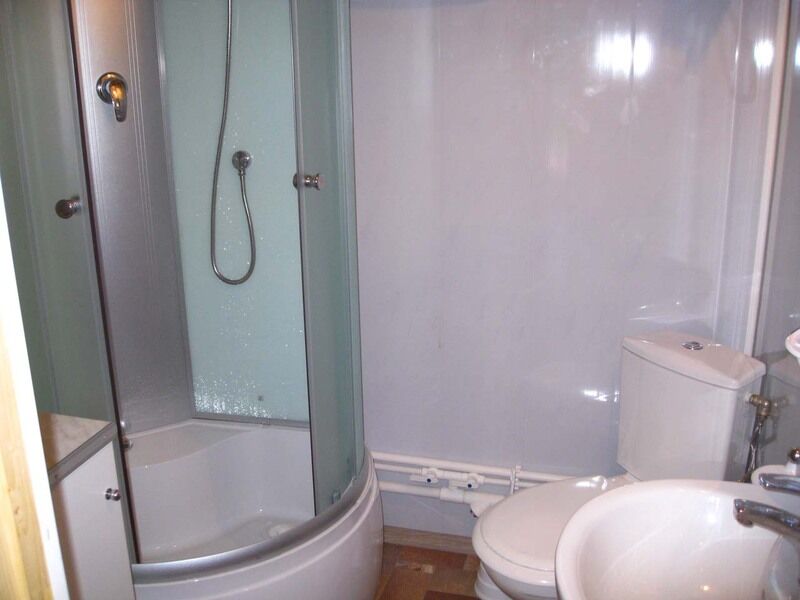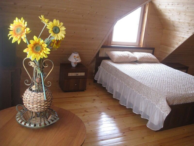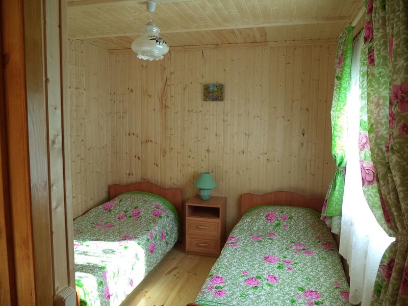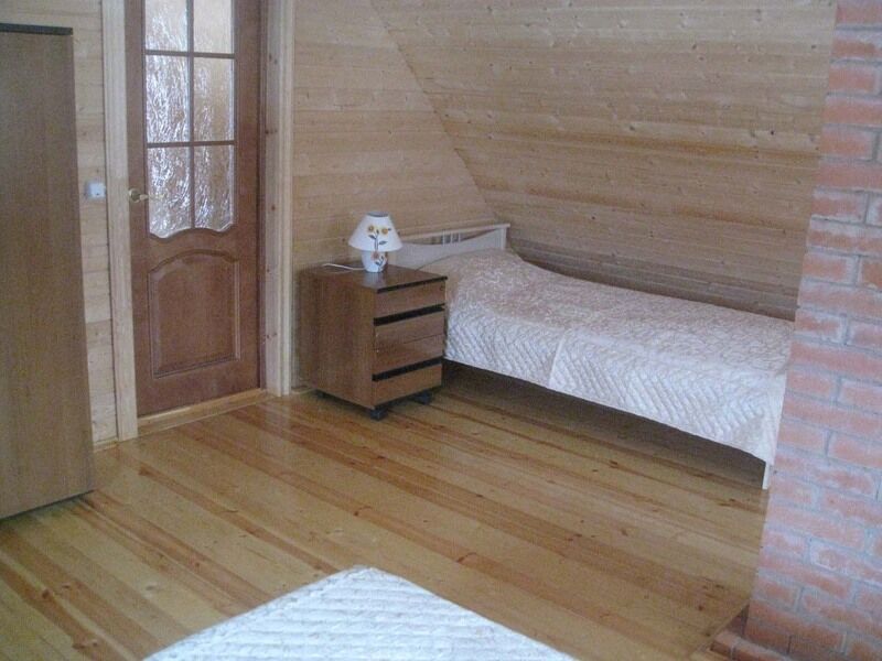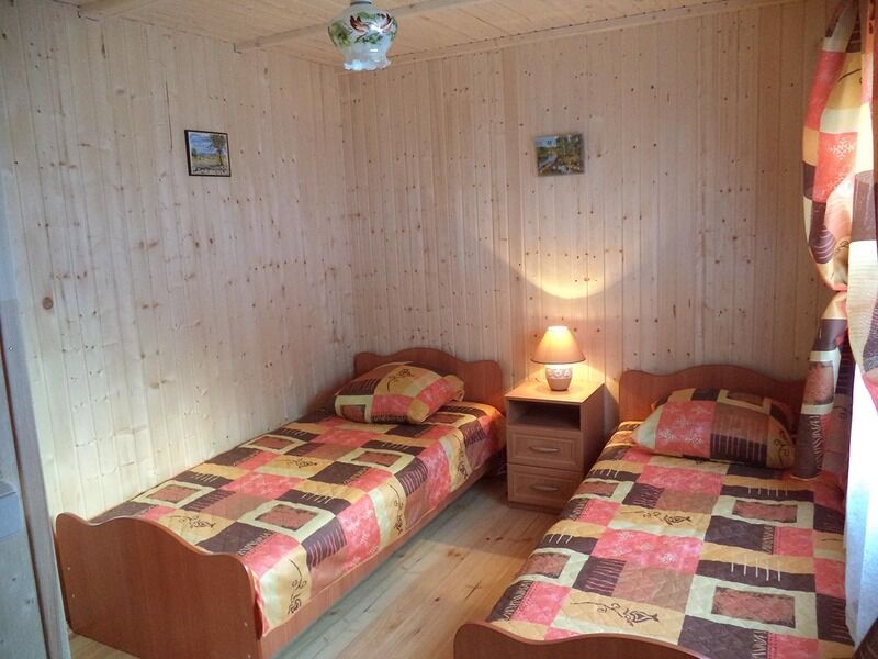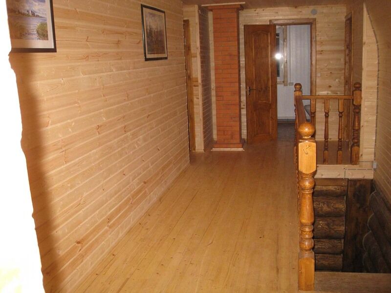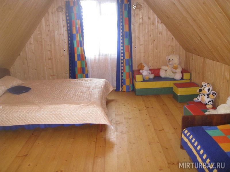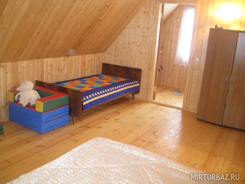 Второй этаж – шесть спален, санузел с душевой кабиной. В двух спальнях – двуспальные кровати, 2 тумбочки, шкаф; в остальных четырёх – по две односпальные кровати и 2 тумбочки. Есть возможность дополнительных мест.
