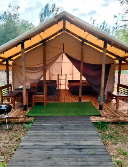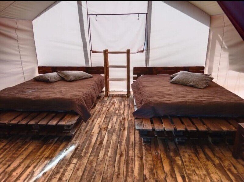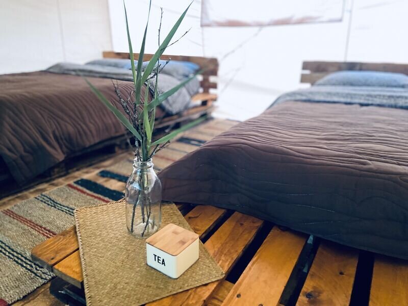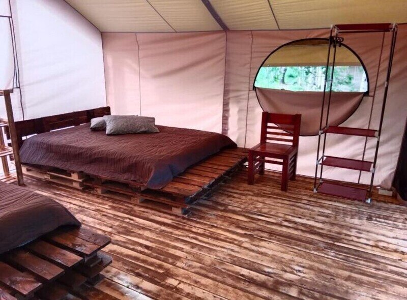 Домик с 2 двуспальными кроватями подходит для 4-х человек.