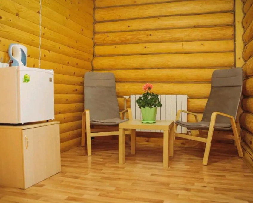 Комнаты выполнены из дерева. Домашняя обстановка царит во всех помещениях гостиницы. Предоставляются номера двух и трехместные с раскладными диванами.
