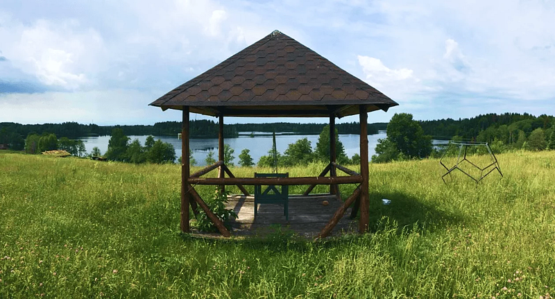 У дома есть большая открытая веранда с видом на озеро, для удобства и приятного времяпрепровождения здесь стоит стол и лавочка.