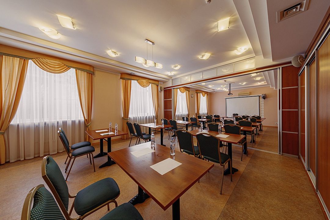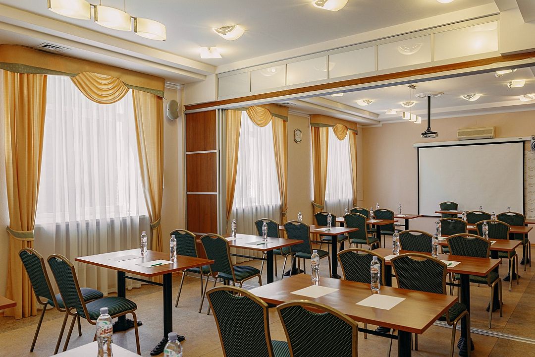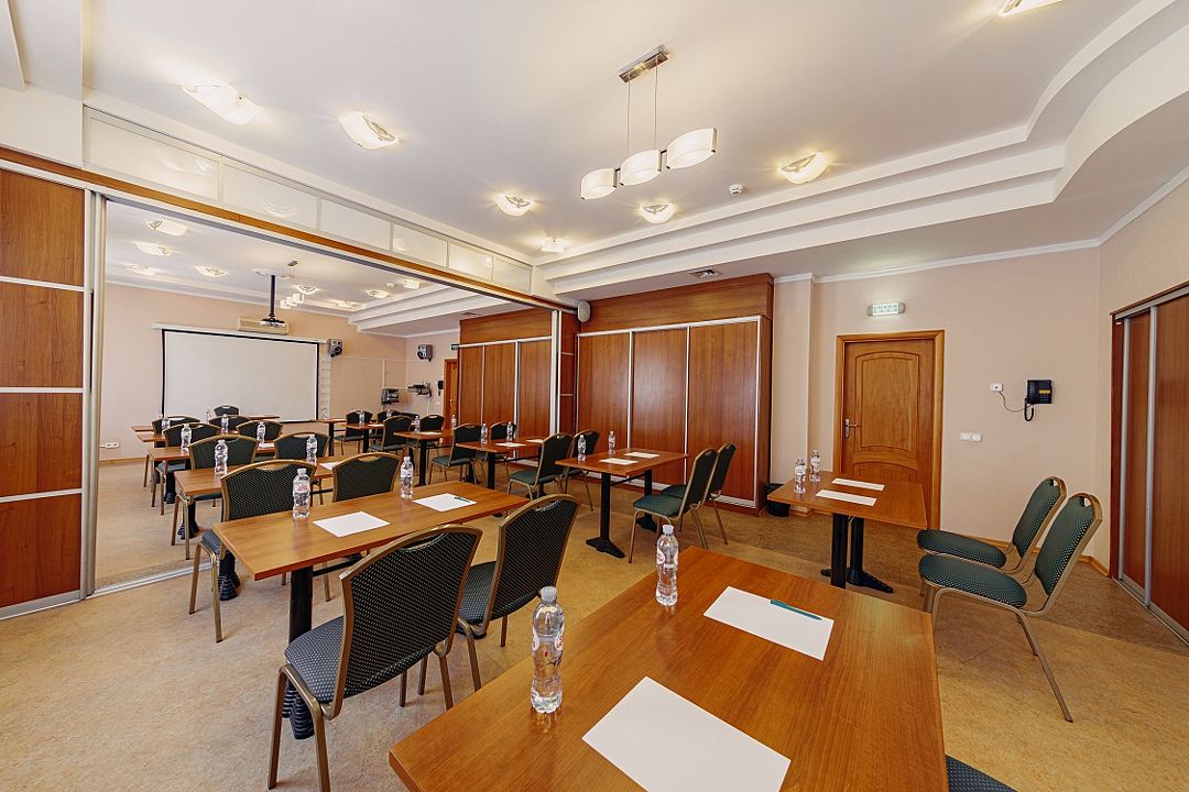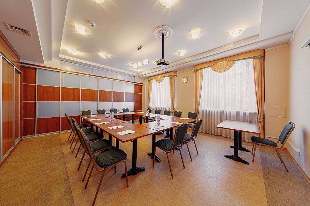 Зал площадью 40 м², вмещающий до 30 человек, оснащен современными технологиями и всем необходимым для комфортного общения. Гостям доступны мультимедийные проекторы, оборудование для усиления звука и WiFi, а также услуги по организации кофе-пауз и бизнес-ланчей в ресторане «Березовая роща».